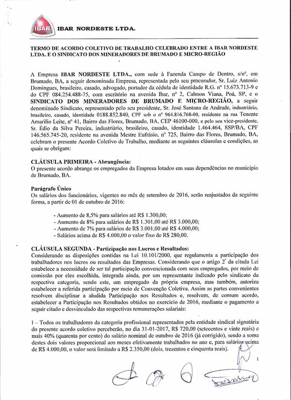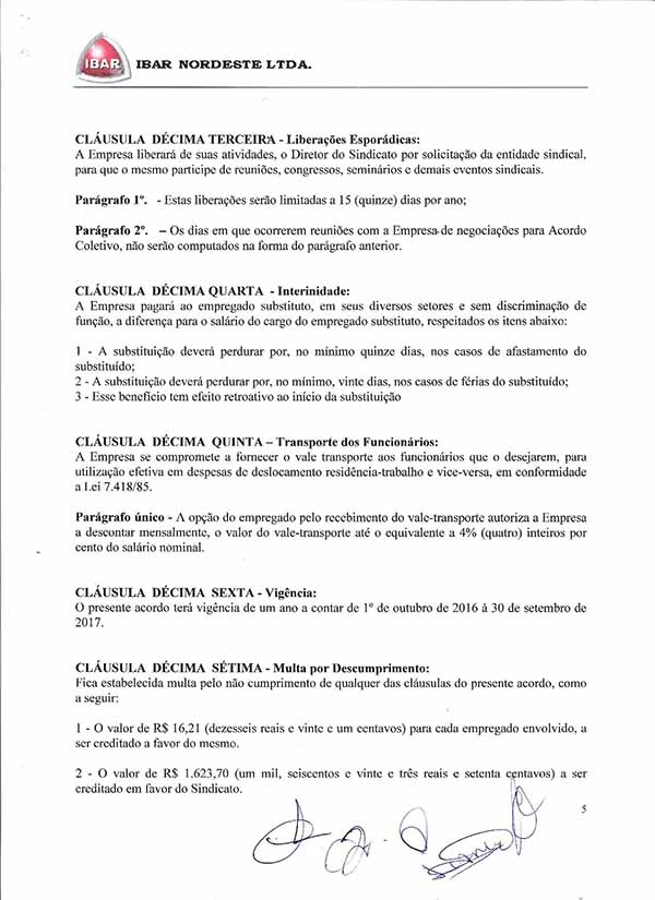 Acordo Coletivo de Trabalho - 2016/2017 - Ibar Nordeste LTDA