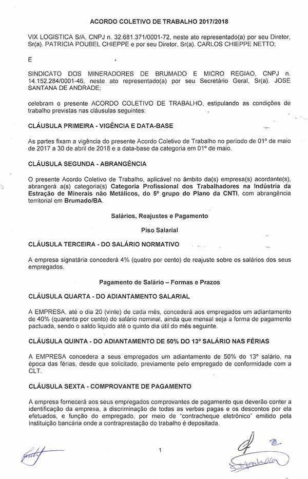Acordo Coletivo de Trabalho - 2017/2018 - VIX LOGÍSTICA S/A