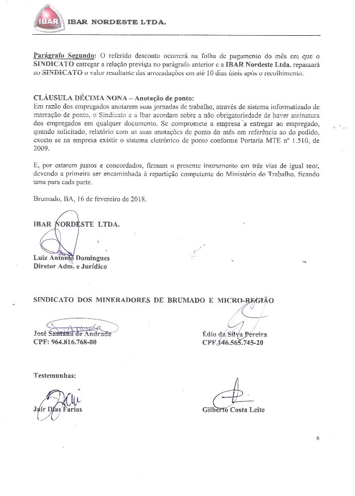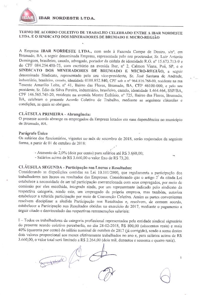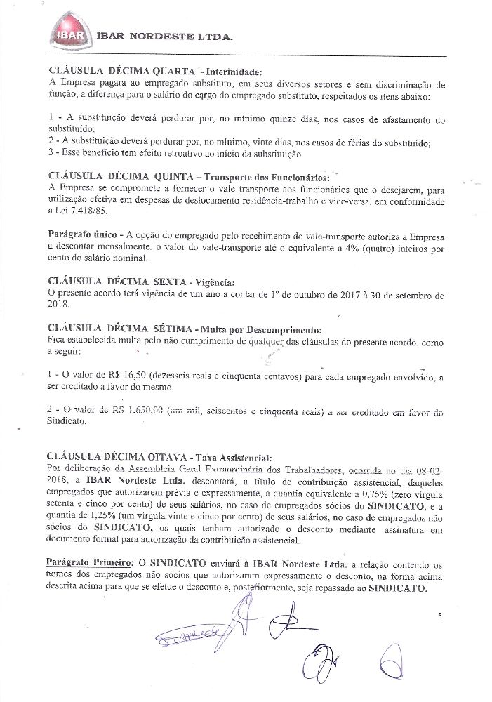 Acordo Coletivo de Trabalho - 2017/2018 - Ibar Nordeste LTDA