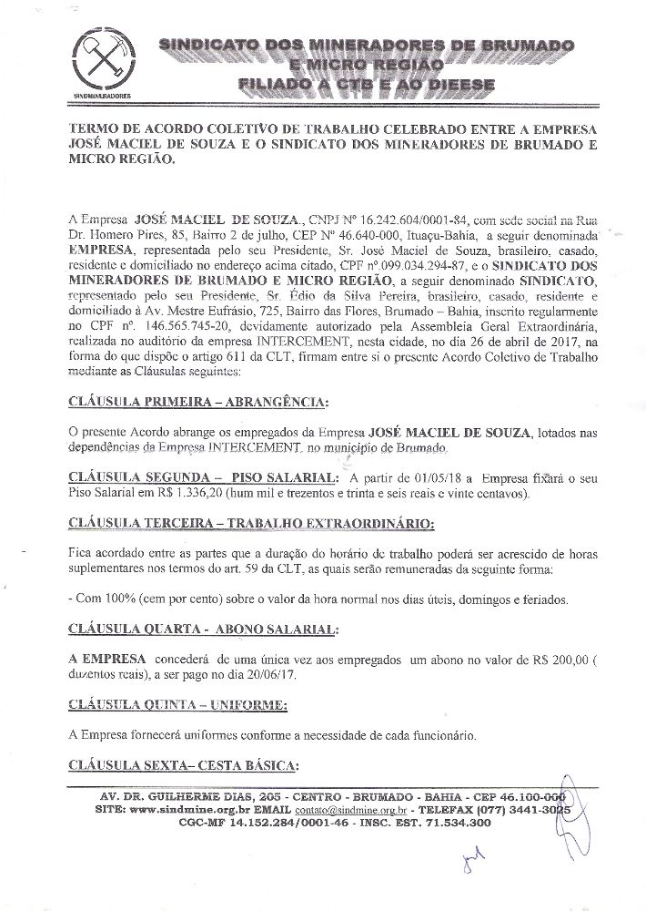 Acordo Coletivo de Trabalho - 2018 - JOSÉ MACIEL DE SOUZA