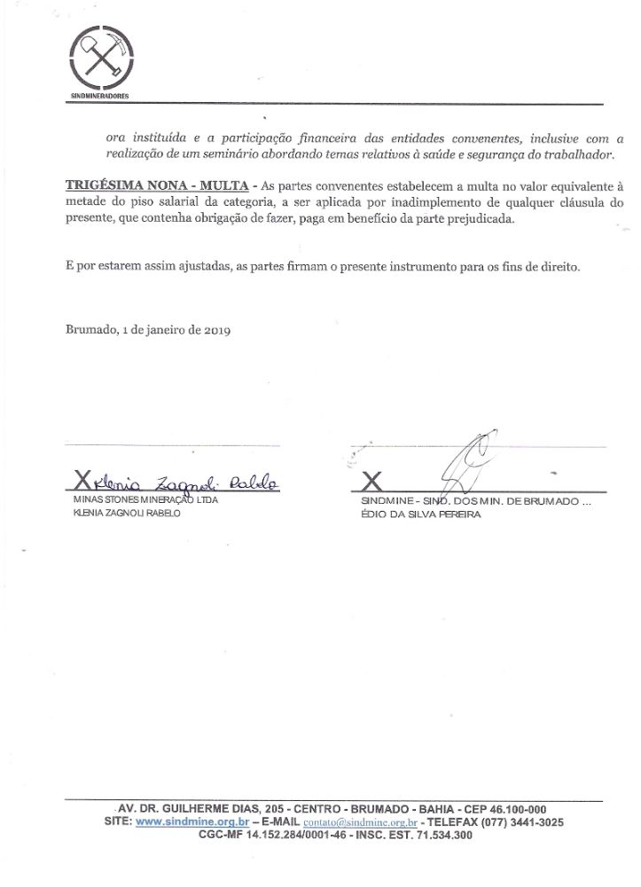 Acordo Coletivo de Trabalho - 2019 - Minas Stones Mineração LTDA