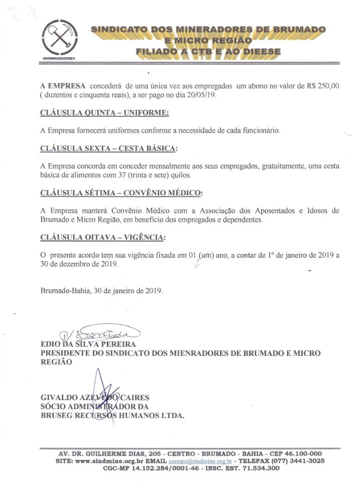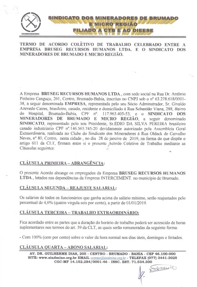 Acordo Coletivo de Trabalho 2019 - Bruseg Recursos Humanos LTDA