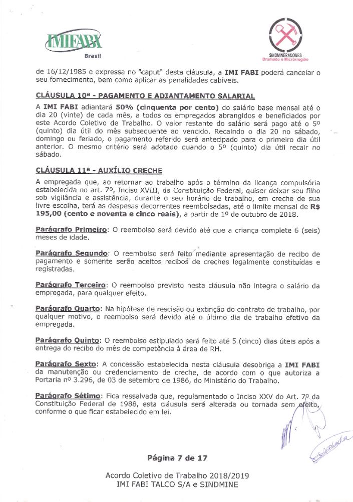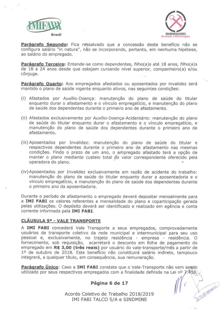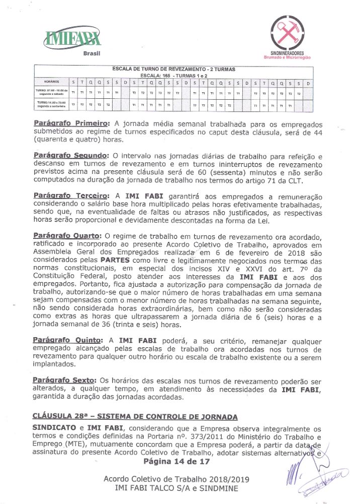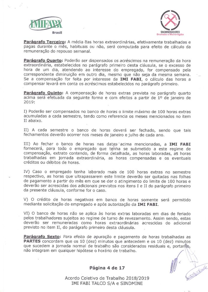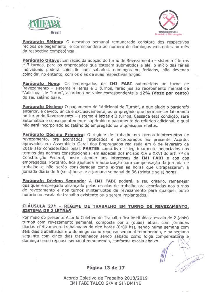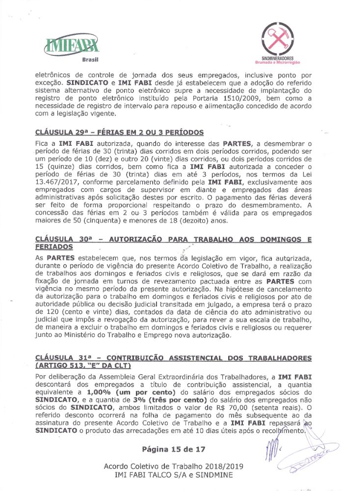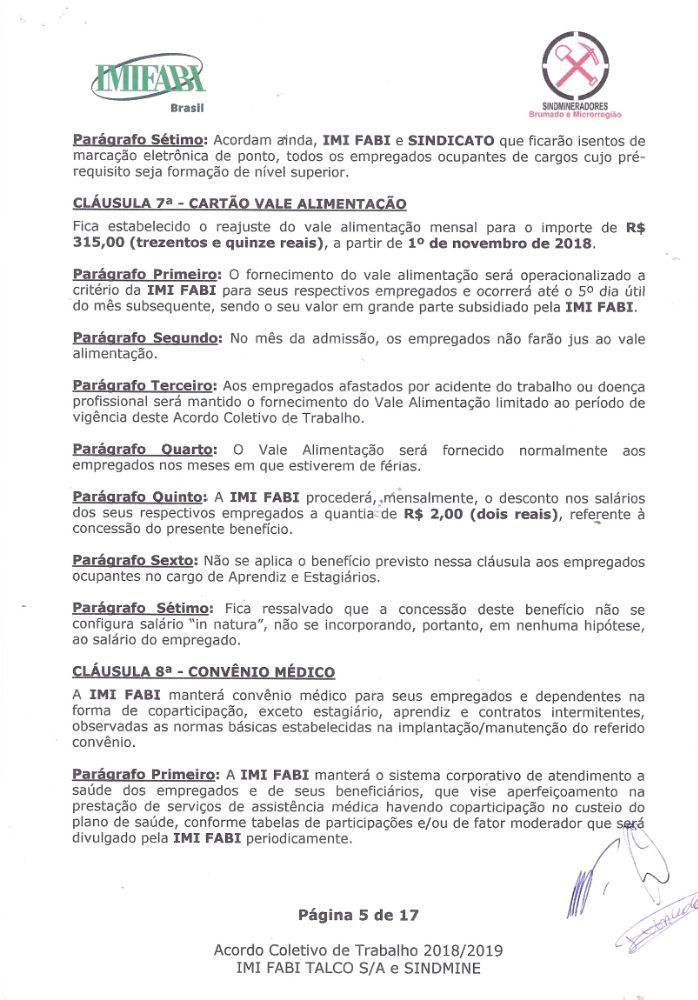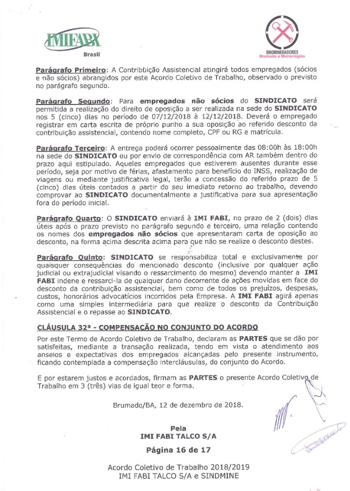 Acordo Coletivo de Trabalho - 2018/2019 - IMI Fabi Talco S/A