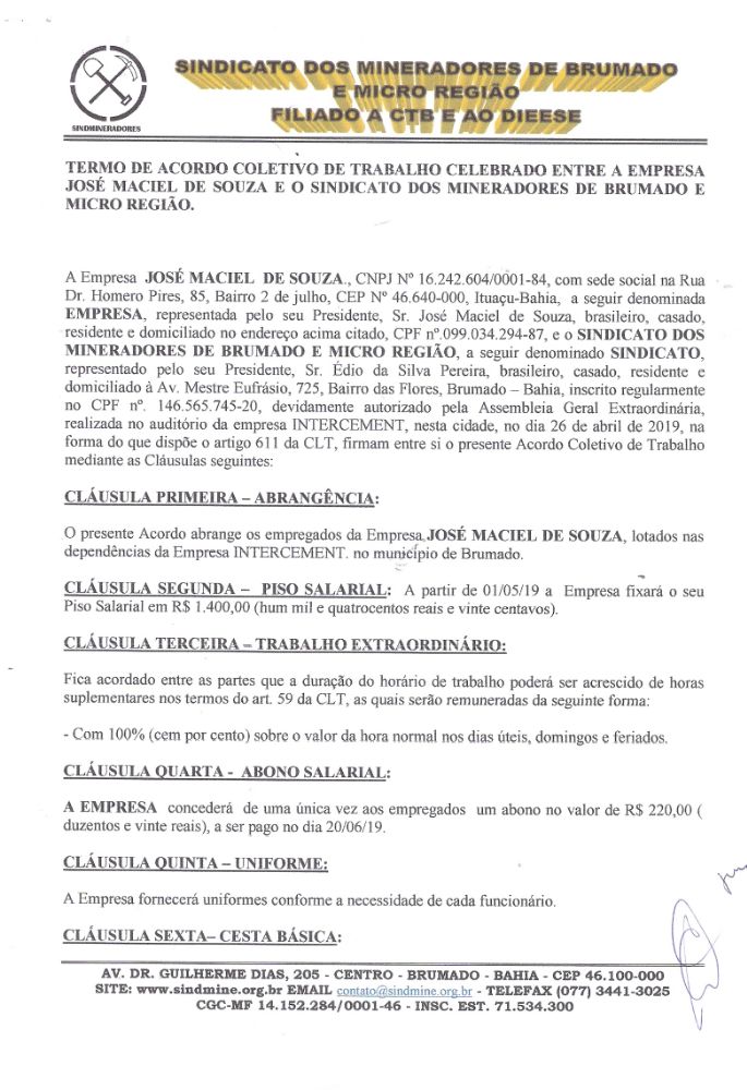 Acordo Coletivo de Trabalho - José Maciel de Souza - 2019