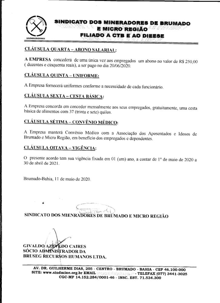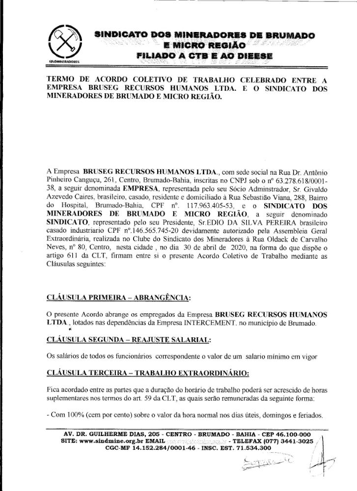 Acordo Coletivo de Trabalho 2020 - Bruseg Recursos Humanos LTDA