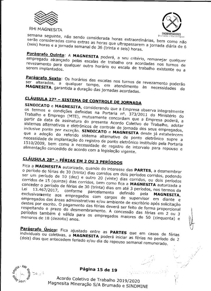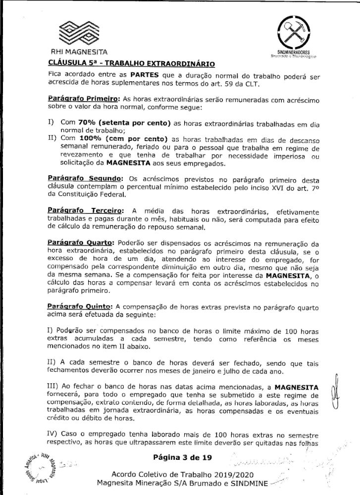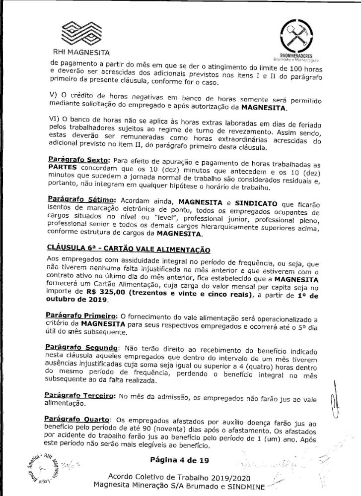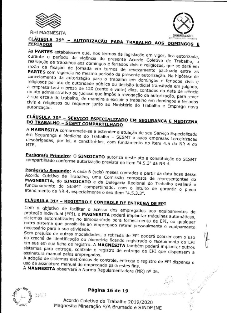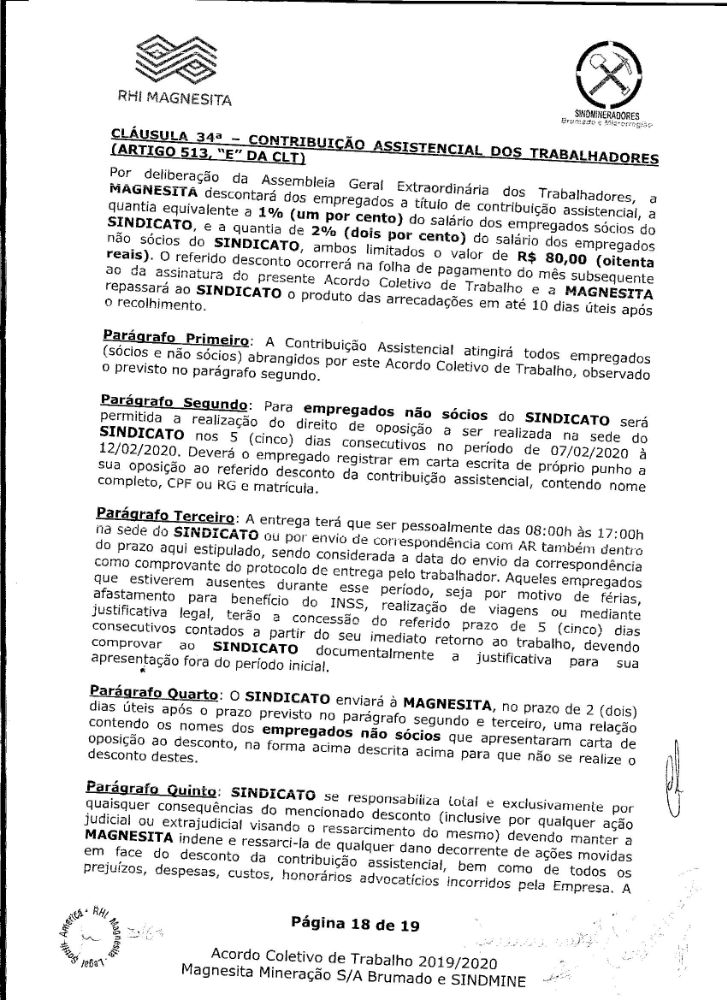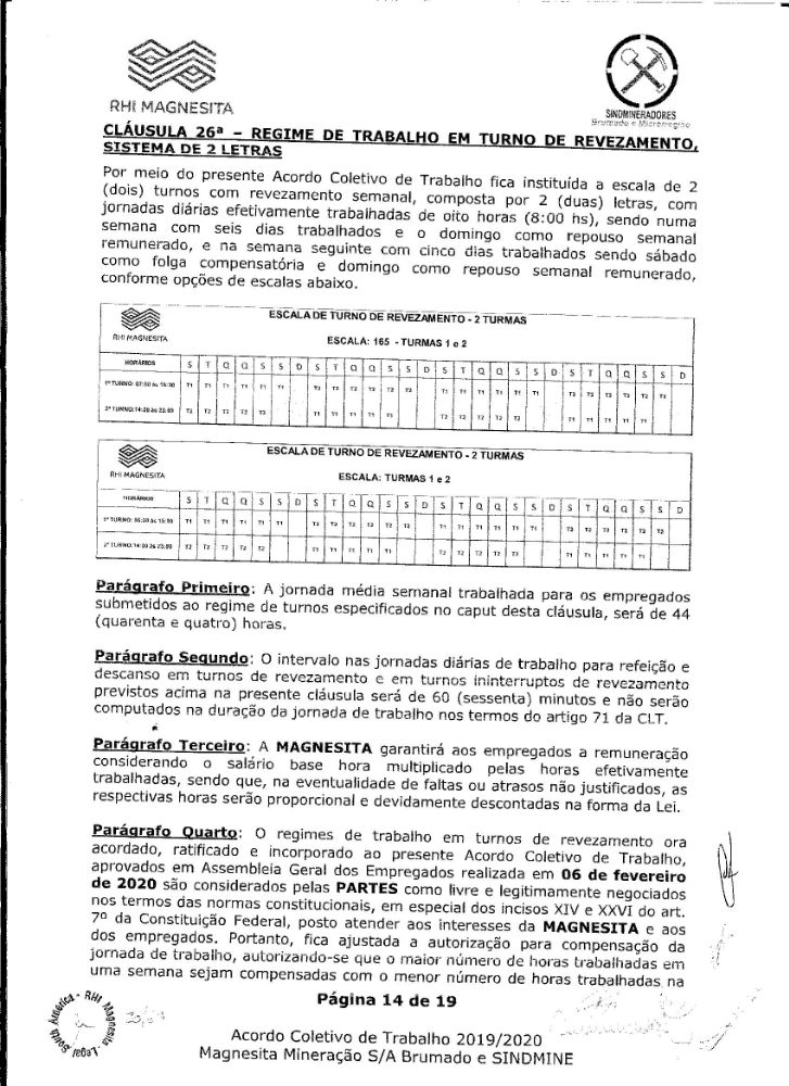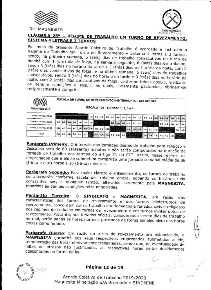 Acordo coletivo de trabalho 2019/2020 - Magnesita Mineração S/A