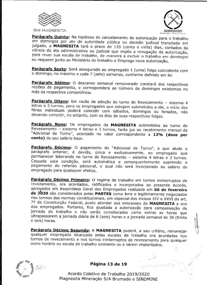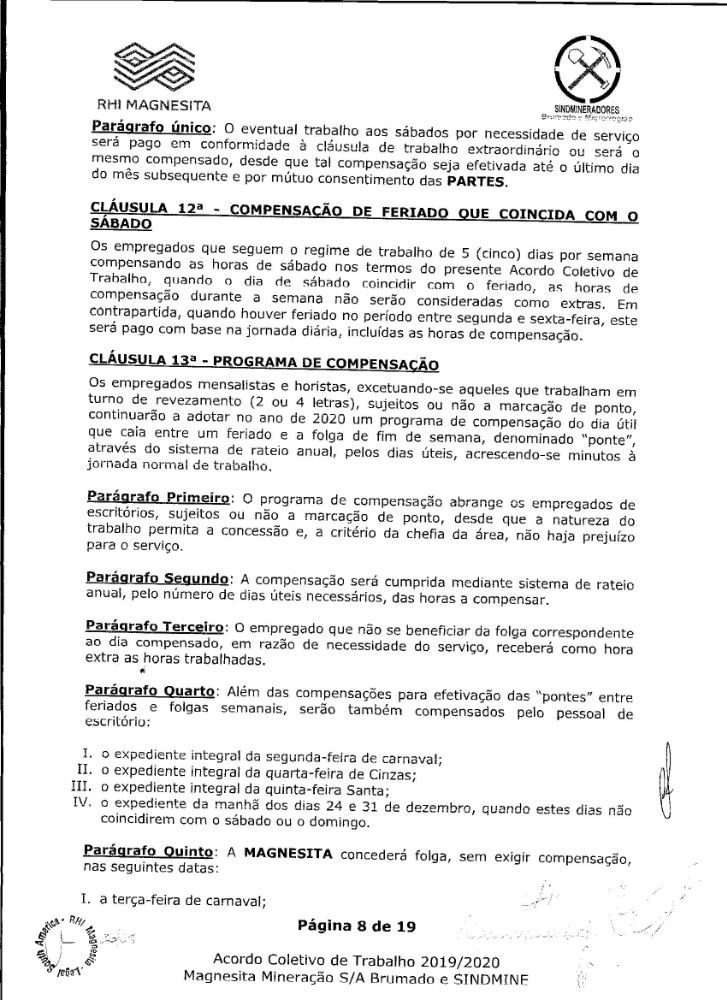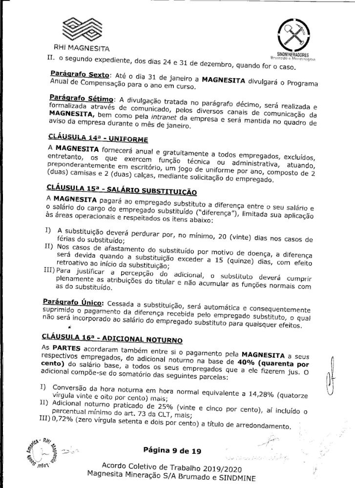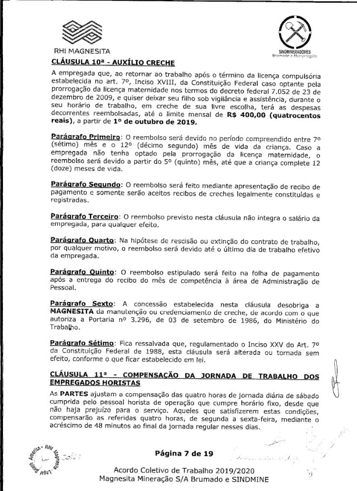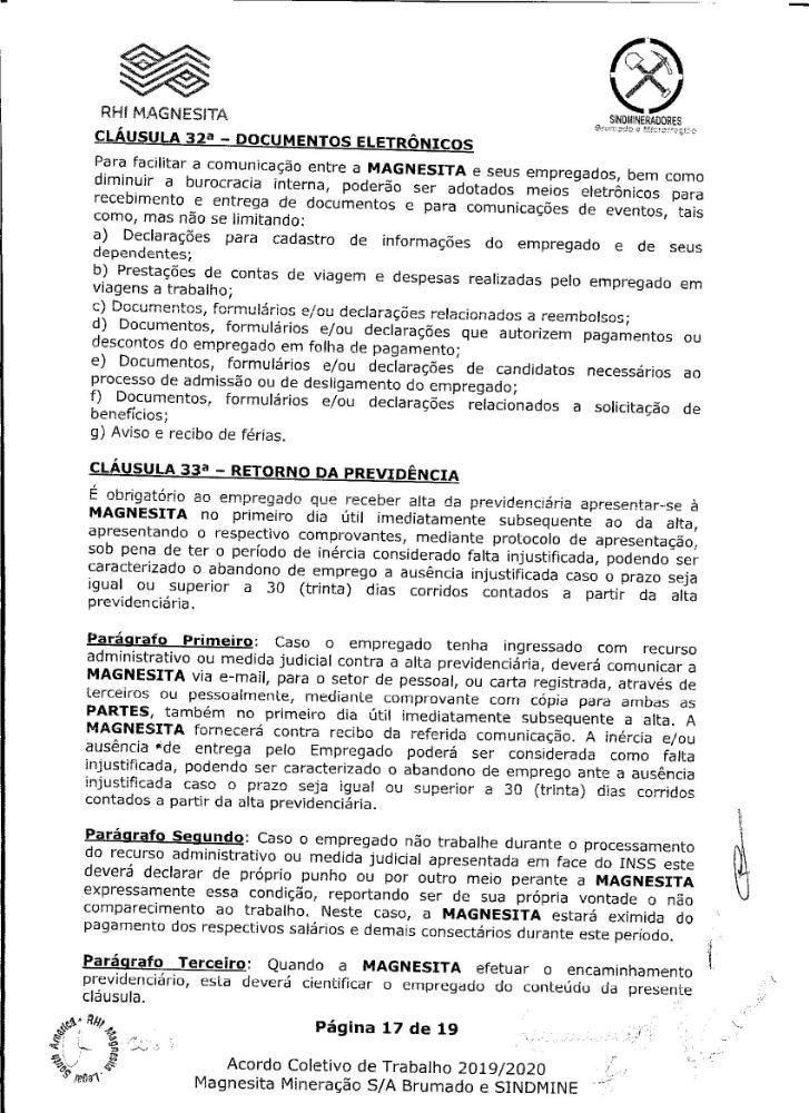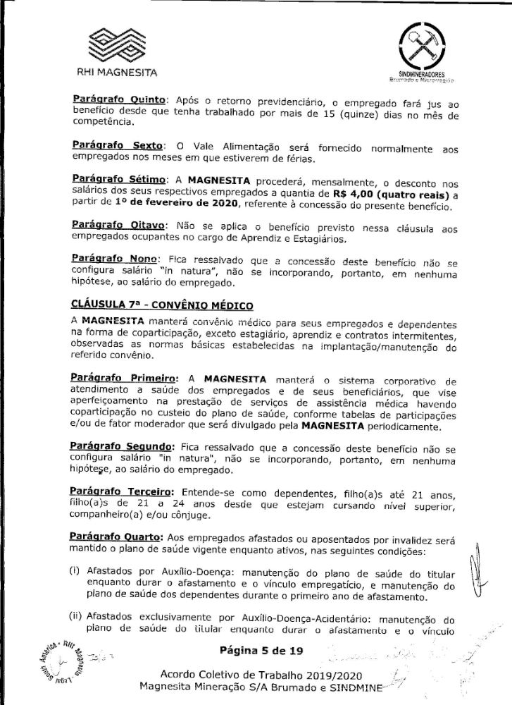 Acordo coletivo de trabalho 2019/2020 - Magnesita Mineração S/A
