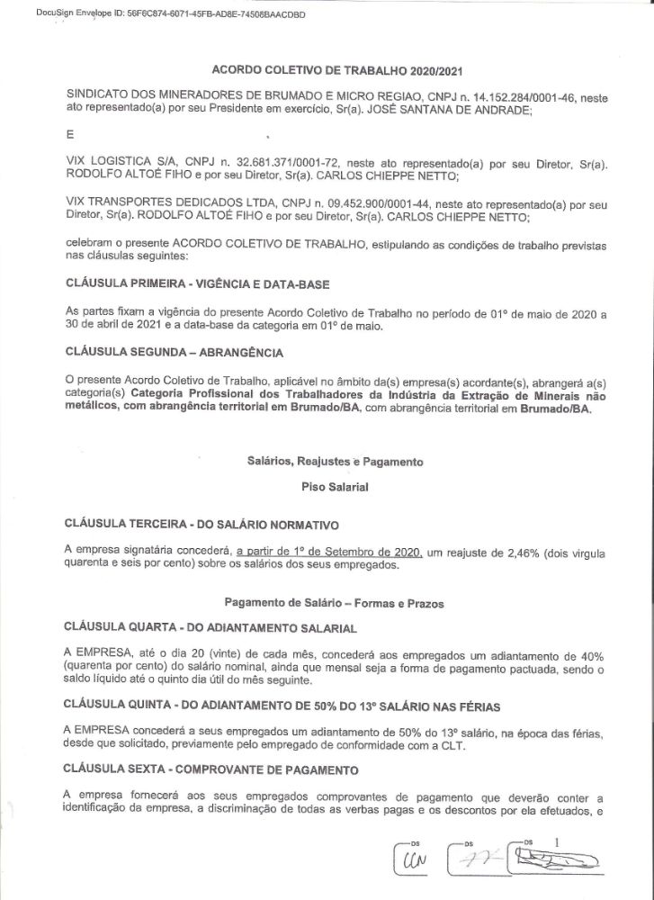 Acordo Coletivo de Trabalho - 2020/2021 - VIX LOGÍSTICA S/A