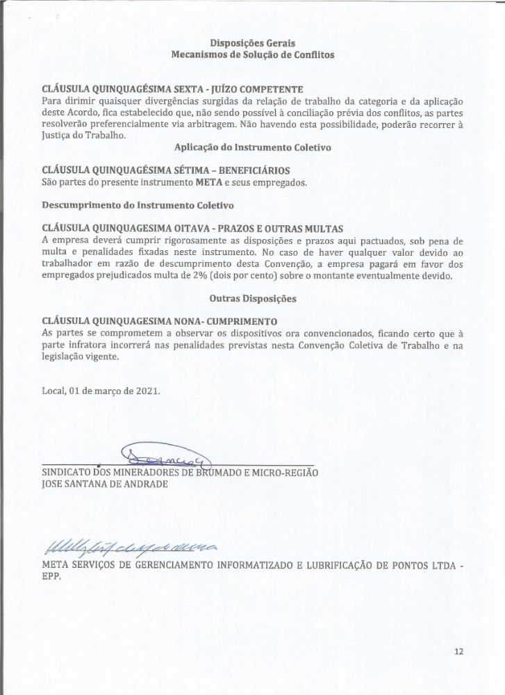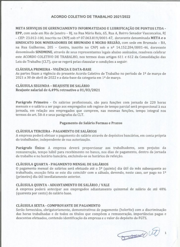 Acordo Coletivo de Trabalho - 2021/2022 - Meta Serviços de Gerenciamento Informatizado e Lubrificação de Pontos
