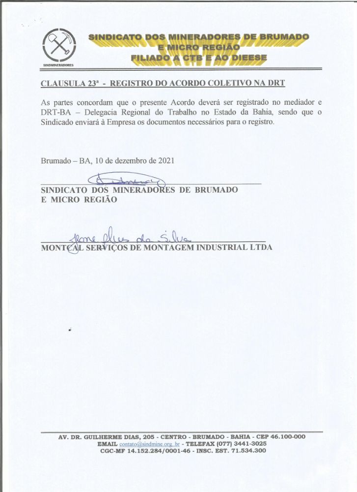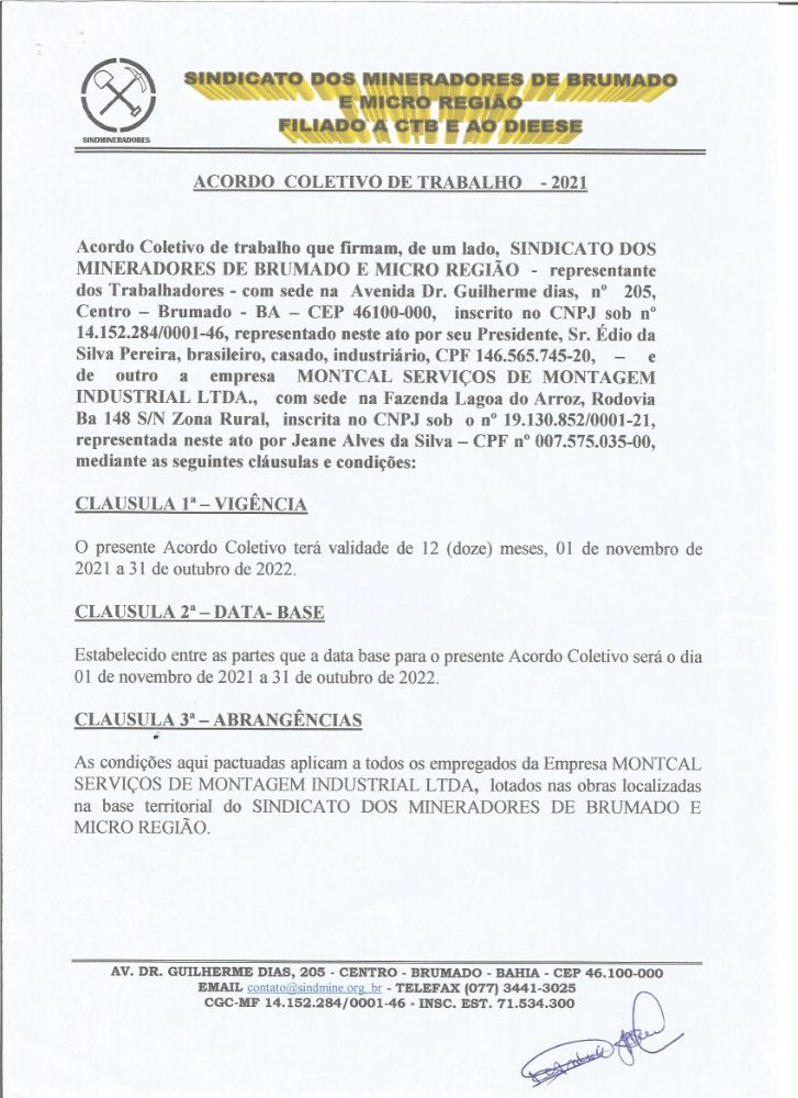 Acordo Coletivo de Trabalho - 2021/2022 - Montcal Serviços de Montagem Industrial LTDA