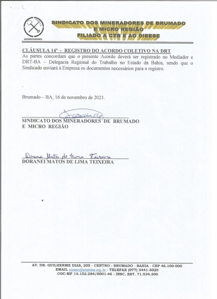 Acordo Coletivo de Trabalho - 2021 - Doranei Matos de Lima Teixeira