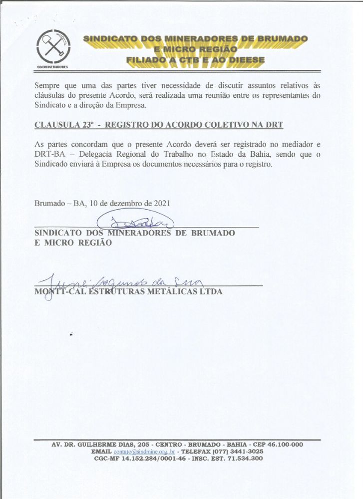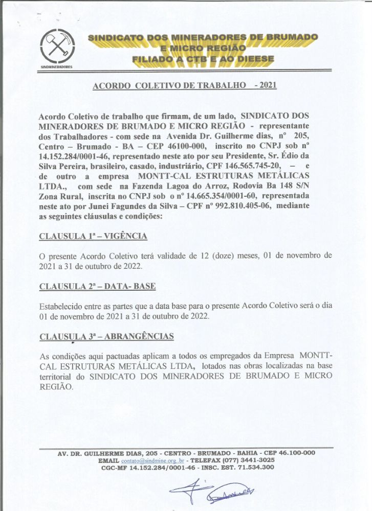 Acordo Coletivo de Trabalho - 2021 - Montcal Serviços de Montagem Industrial LTDA