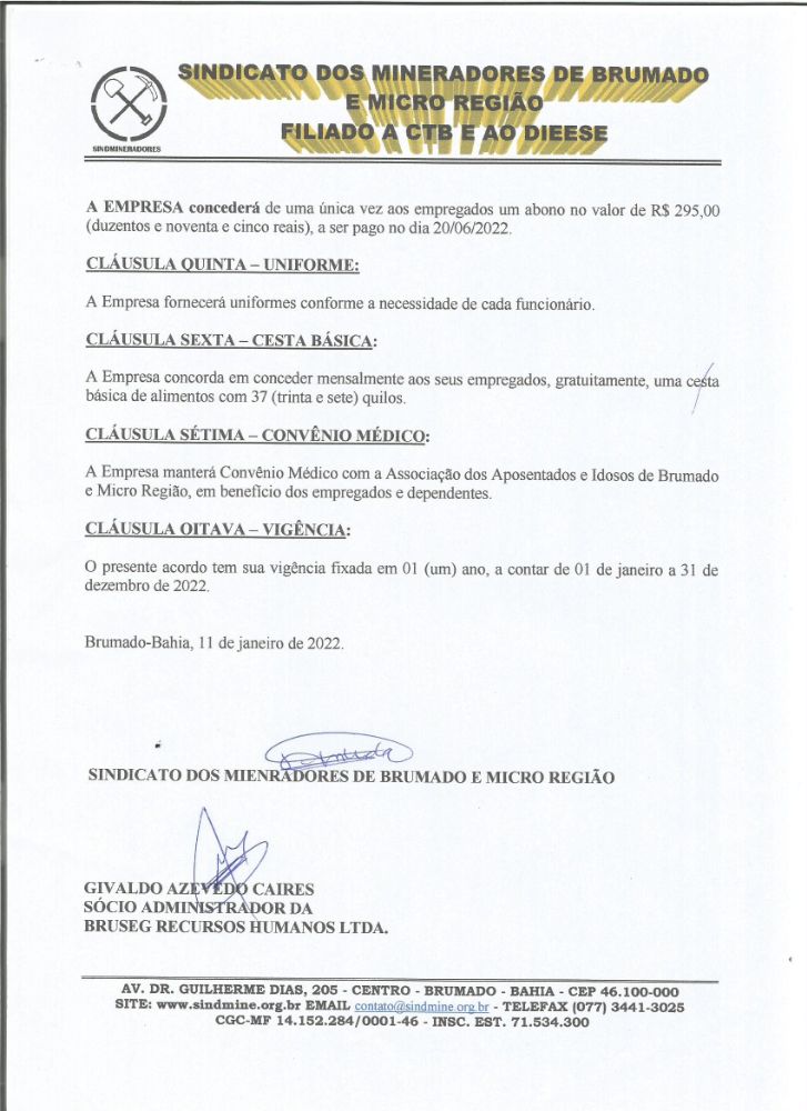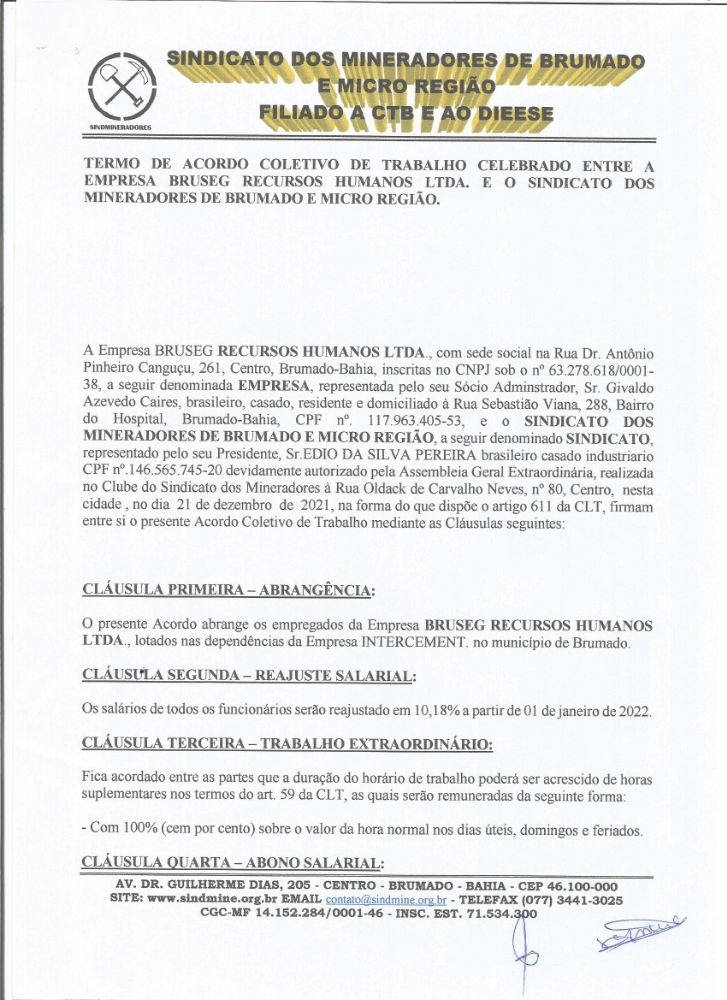 Acordo Coletivo de Trabalho 2022 - Bruseg Recursos Humanos LTDA