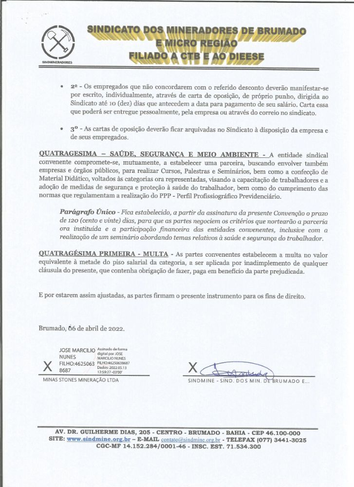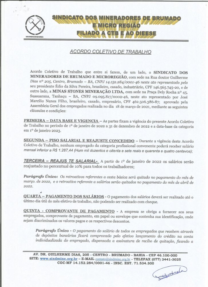 Acordo Coletivo de Trabalho - 2022 - Minas Stones Mineração LTDA