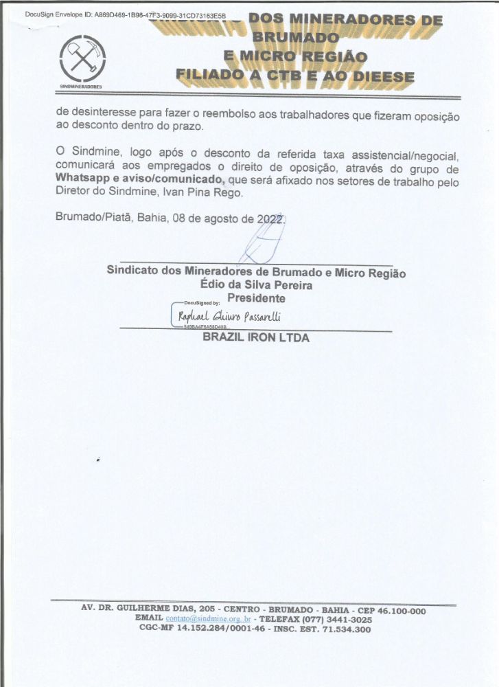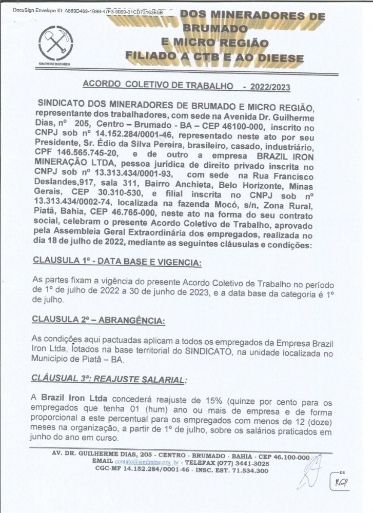 Acordo Coletivo de Trabalho 2022/2023 - Brasil Iron Mineração LTDA