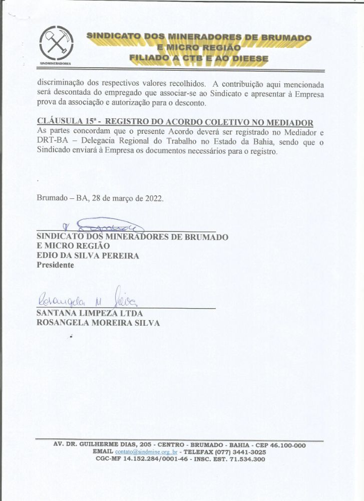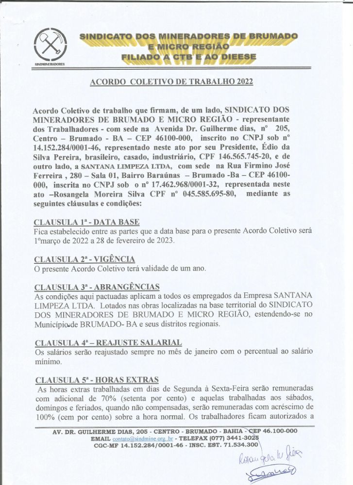 Acordo Coletivo de Trabalho - 2022 - Santana Limpeza LTDA