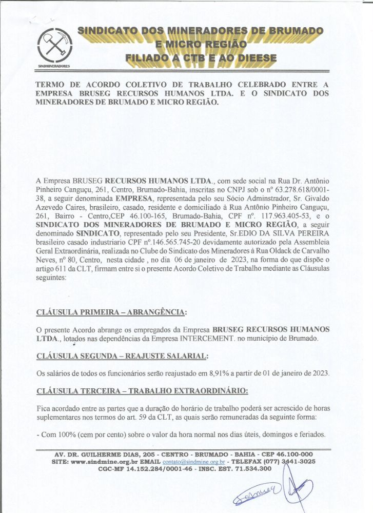 Acordo Coletivo de Trabalho 2023 - Bruseg Recursos Humanos LTDA