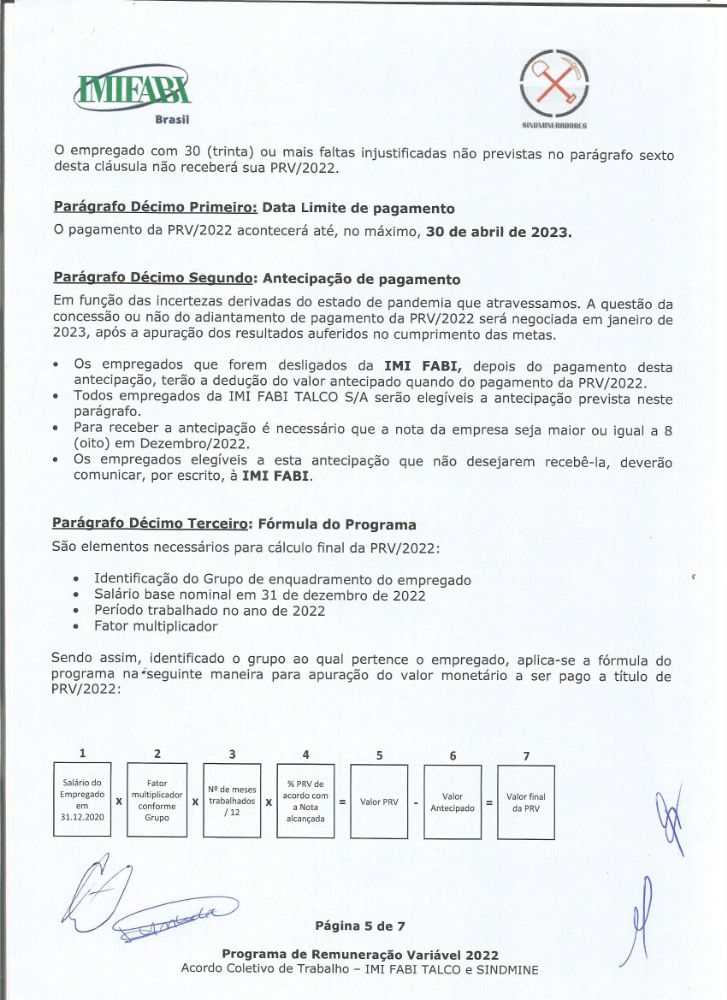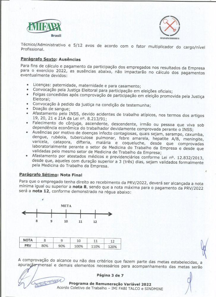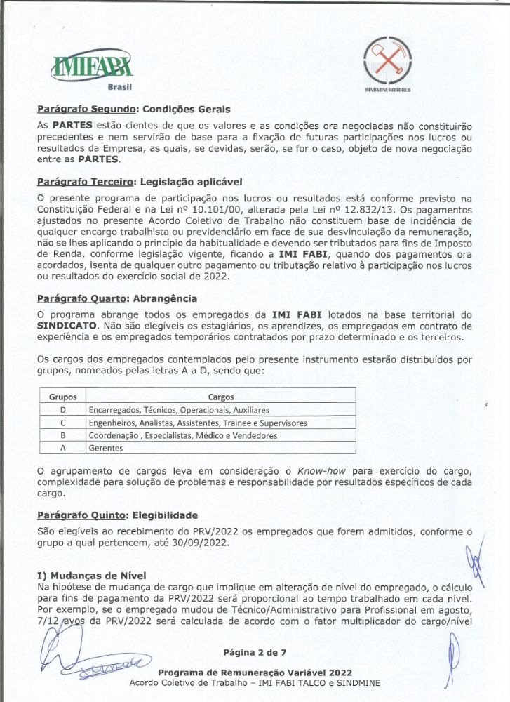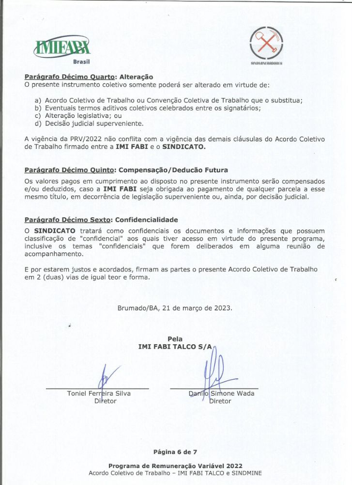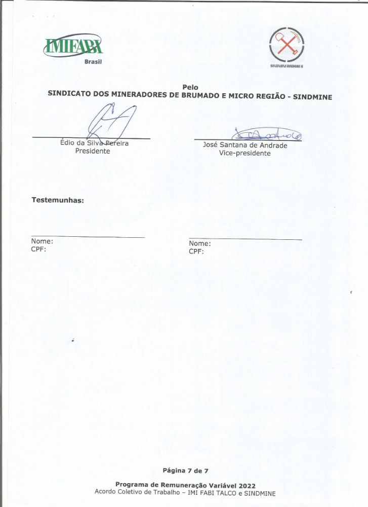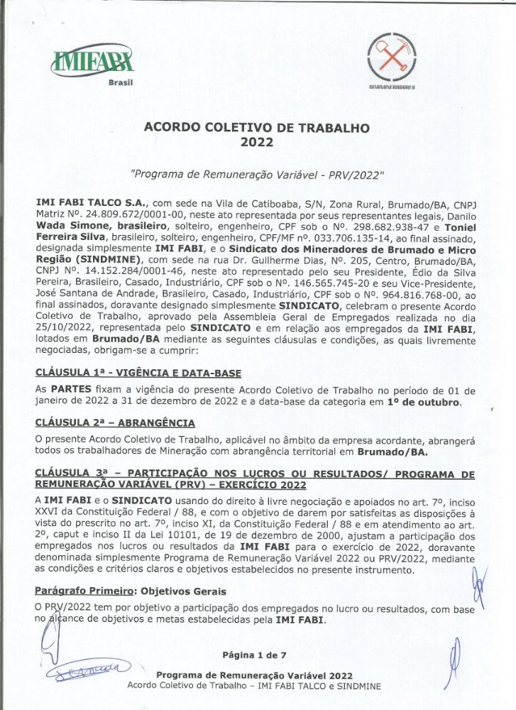Acordo Coletivo de Trabalho - 2022 - IMI Fabi Talco S/A