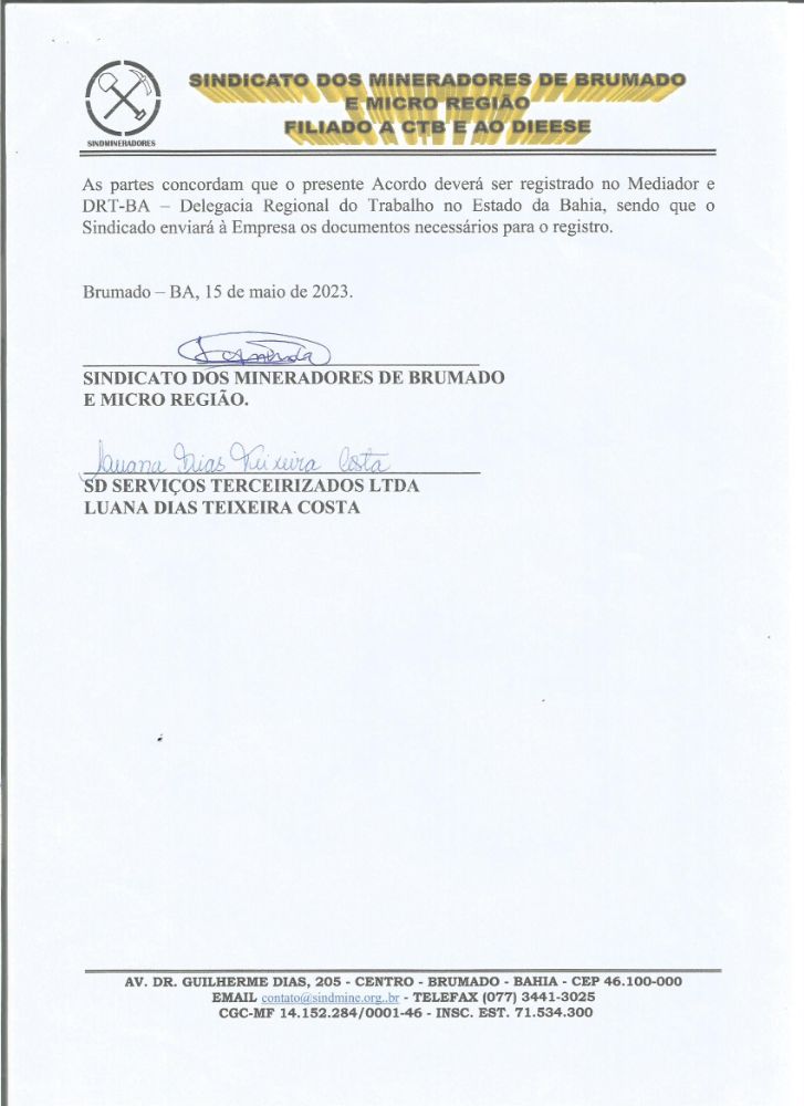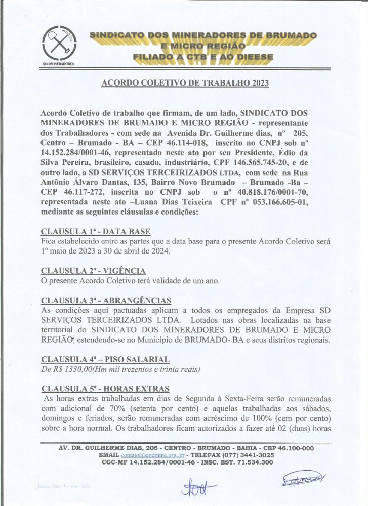 Acordo Coletivo de Trabalho - 2023 - SD Serviços Terceirizados LTDA