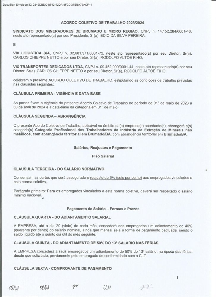 Acordo Coletivo de Trabalho - 2023/2024 - VIX LOGÍSTICA S/A