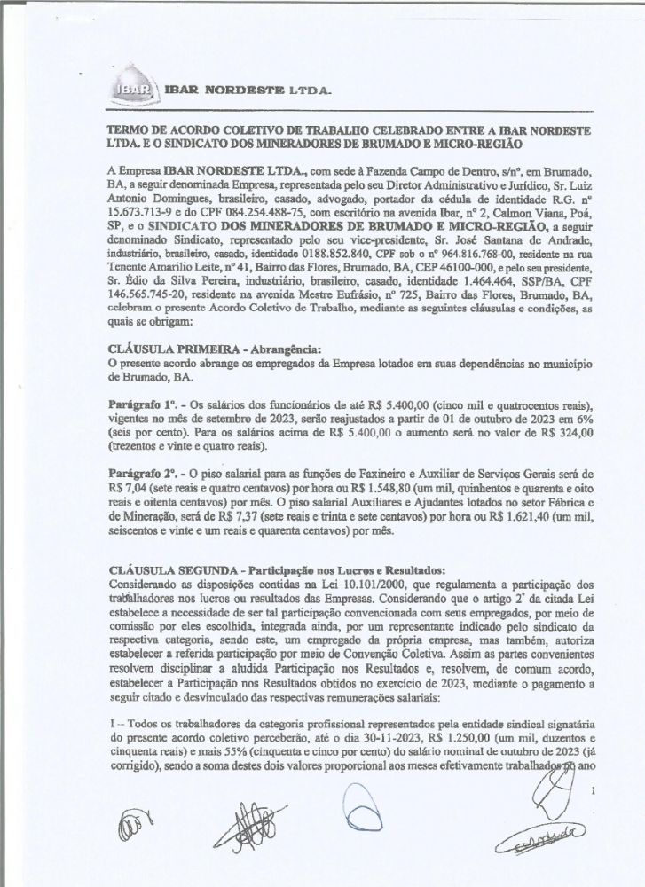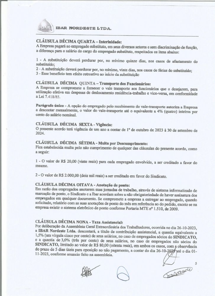 Acordo Coletivo de Trabalho - 2023/2024 - Ibar Nordeste LTDA