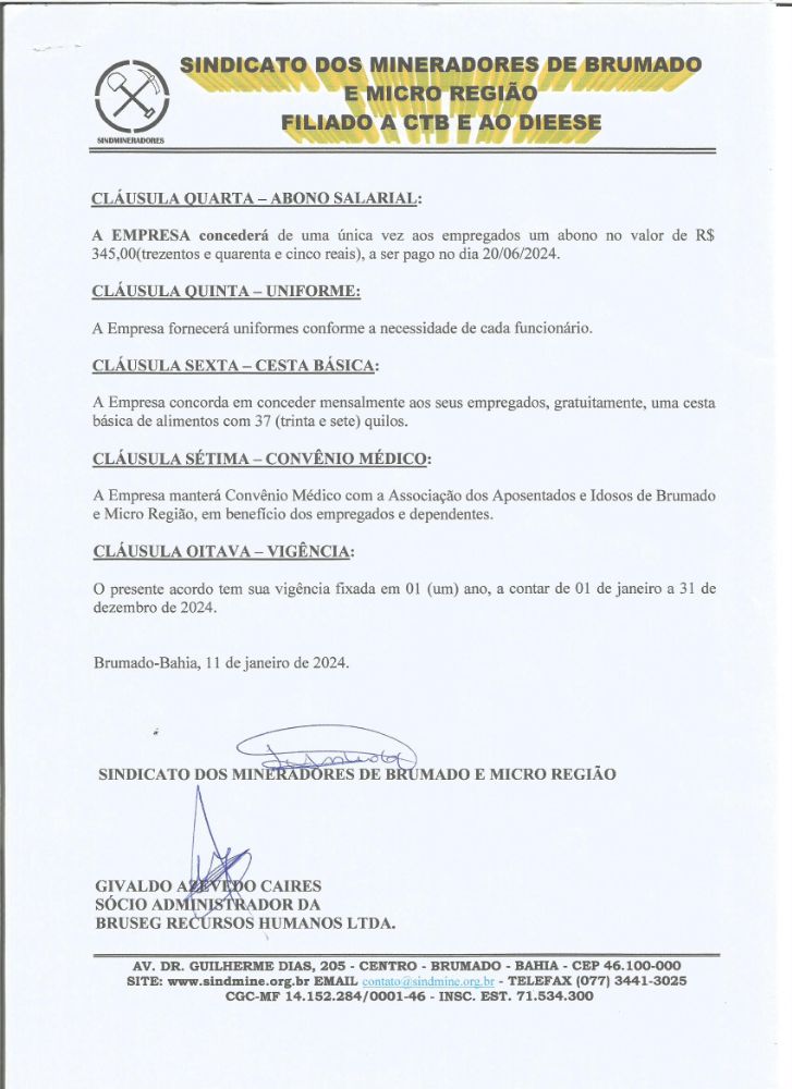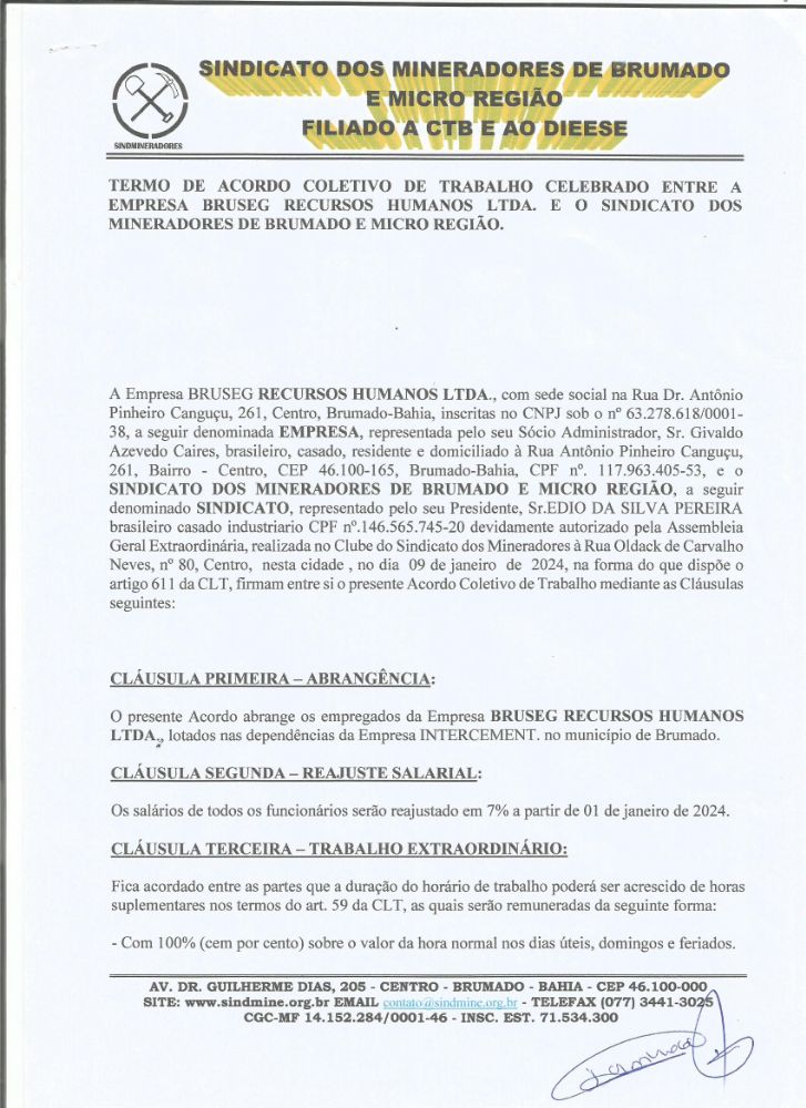 Acordo Coletivo de Trabalho 2024 - Bruseg Recursos Humanos LTDA