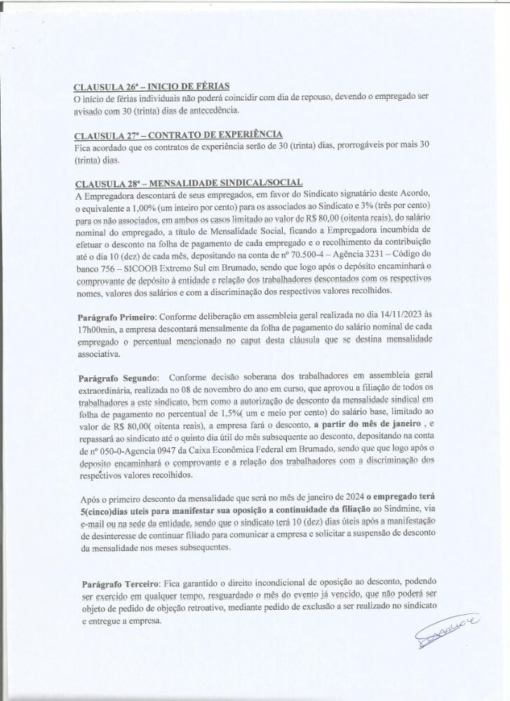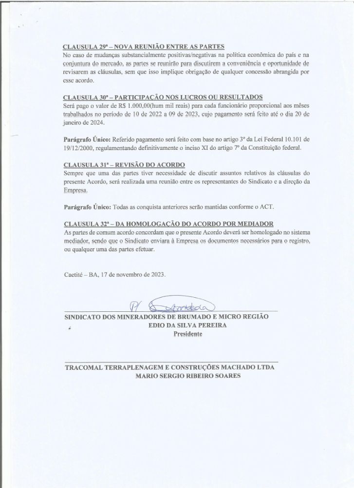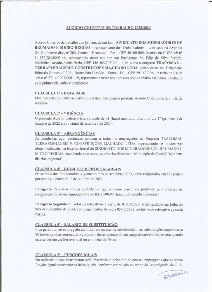 Acordo coletivo de trabalho 2023/2024 - Tracomal - Terraplanagem e Construções Machado LTDA