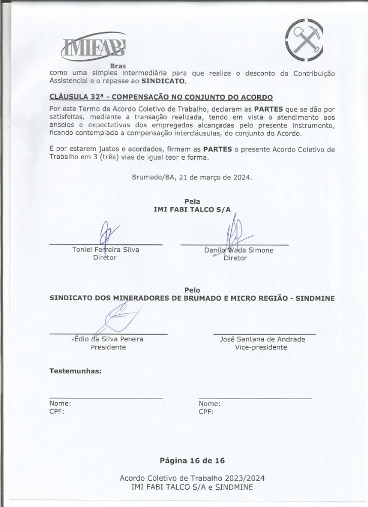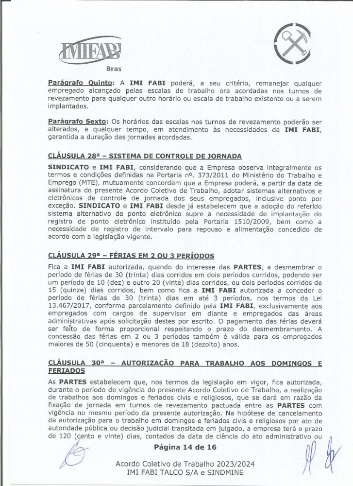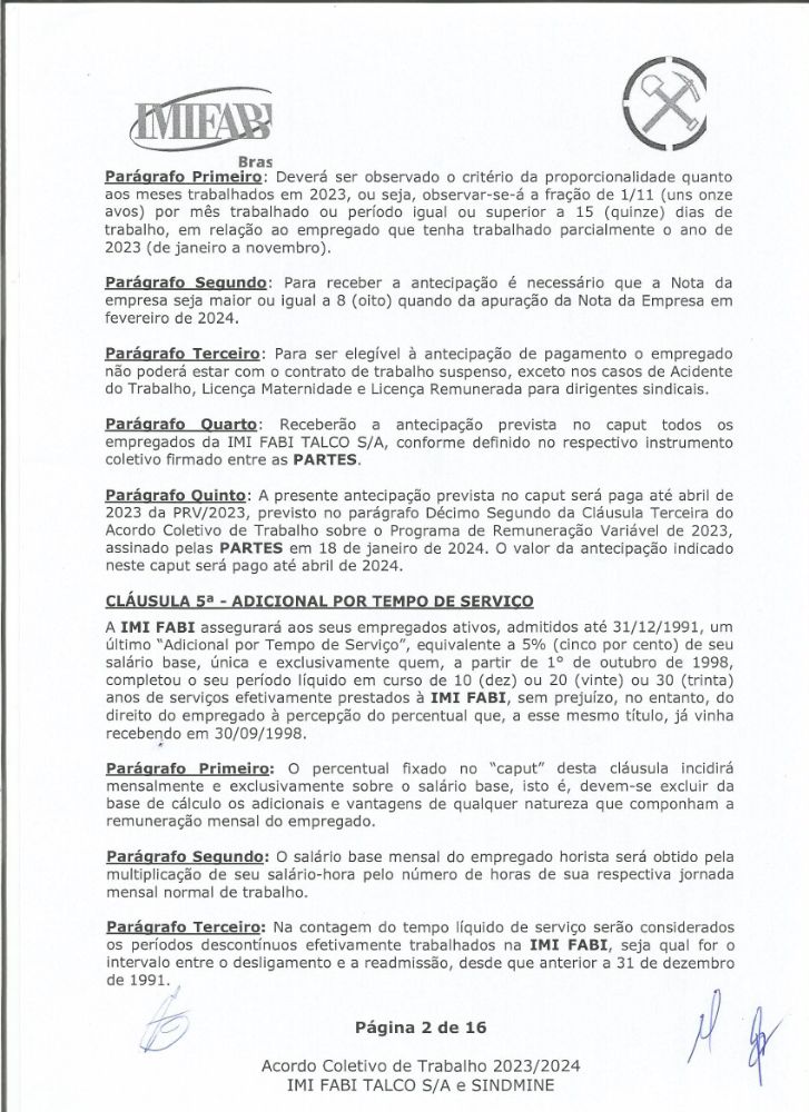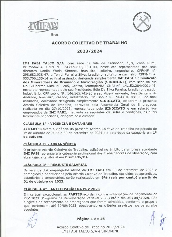 Acordo Coletivo de Trabalho - 2023-2024 - IMI Fabi Talco S/A