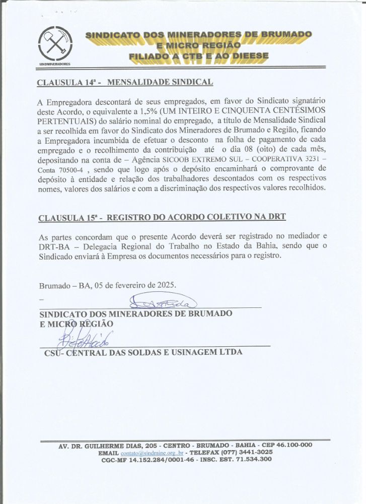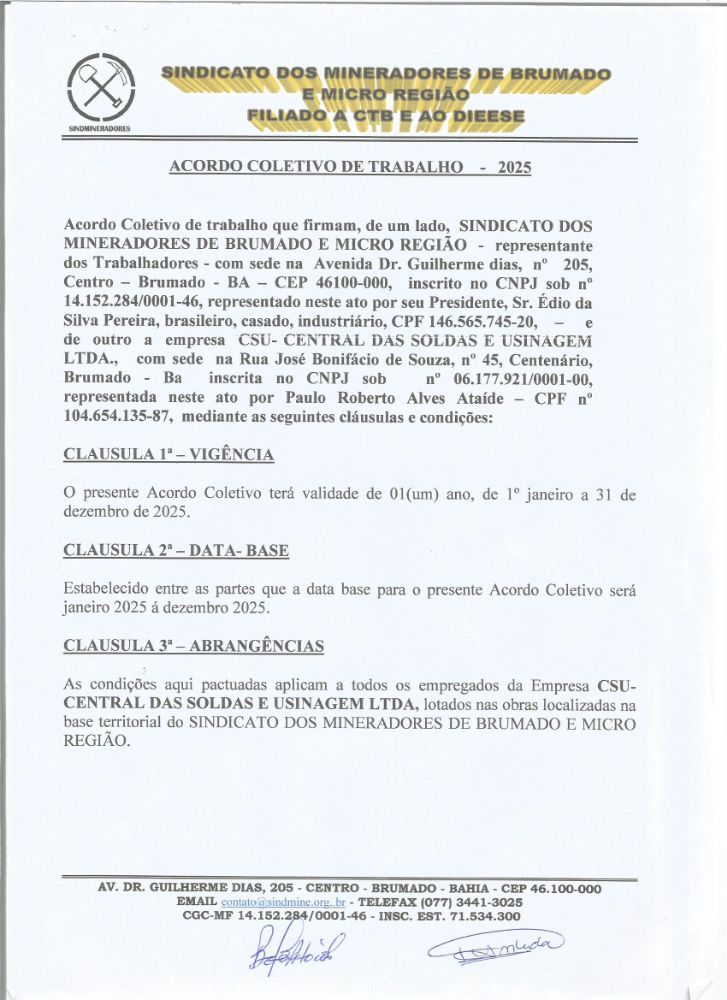 Acordo Coletivo de Trabalho 2025 - CSU Central das Soldas e Usinagem LTDA