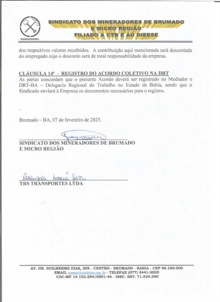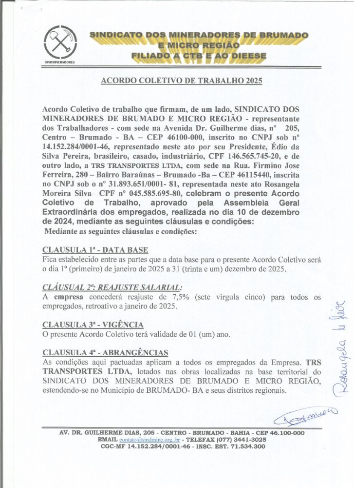 Acordo Coletivo de Trabalho 2025 - TRS TRANSPORTES LTDA