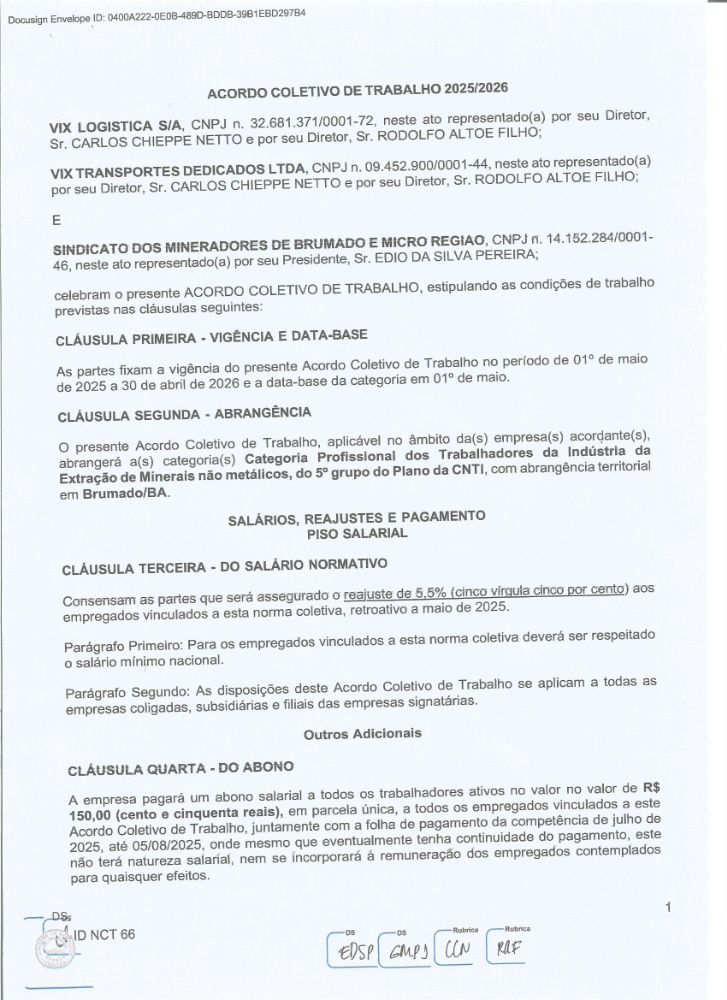Acordo Coletivo de Trabalho - 2025/2026 - VIX LOGÍSTICA S/A