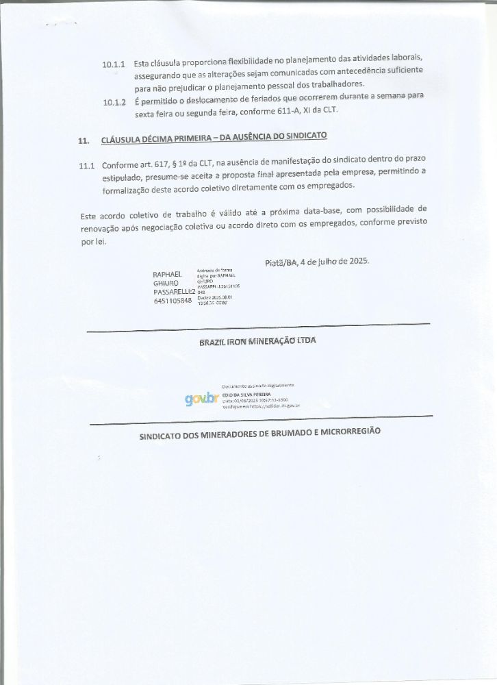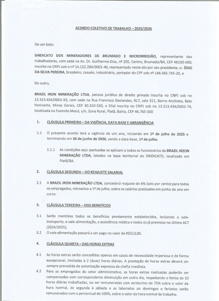 Acordo Coletivo de Trabalho 2025/2026 - Brasil Iron Mineração LTDA