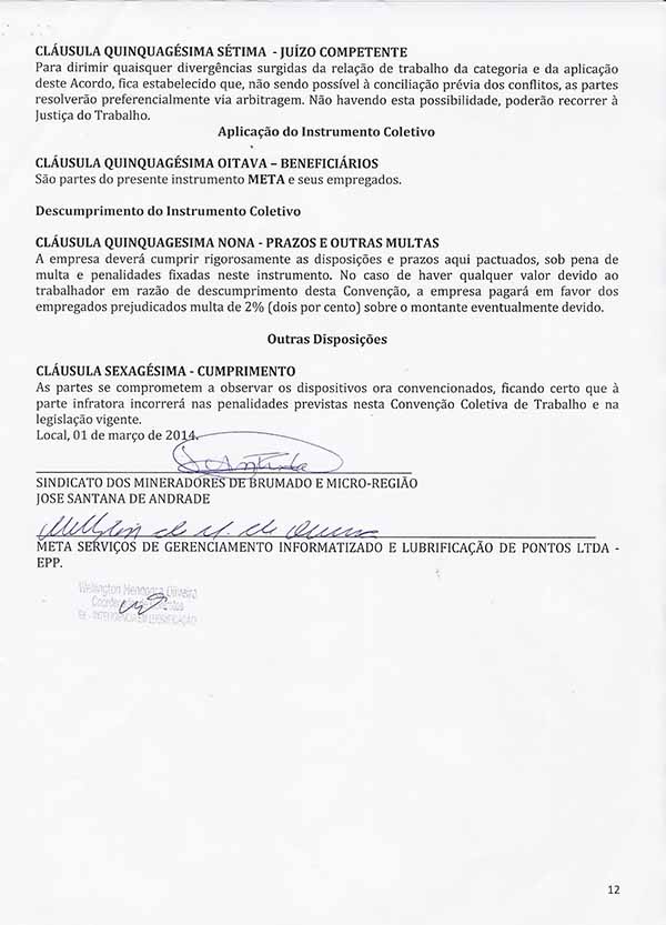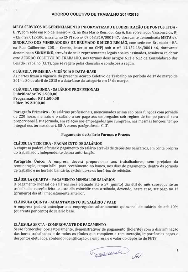 Acordo Coletivo de Trabalho - 2014/2015 - Meta Serviços de Gerenciamento Informatizado e Lubrificação de Pontos