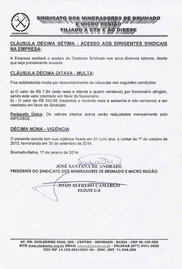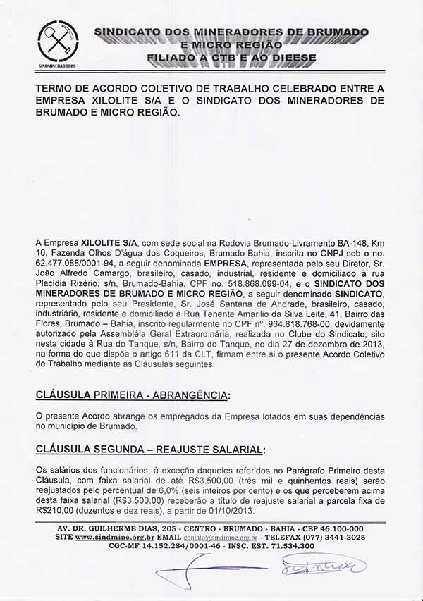 Acordo Coletivo de Trabalho - 2013/2014 - Xilolite S. A.
