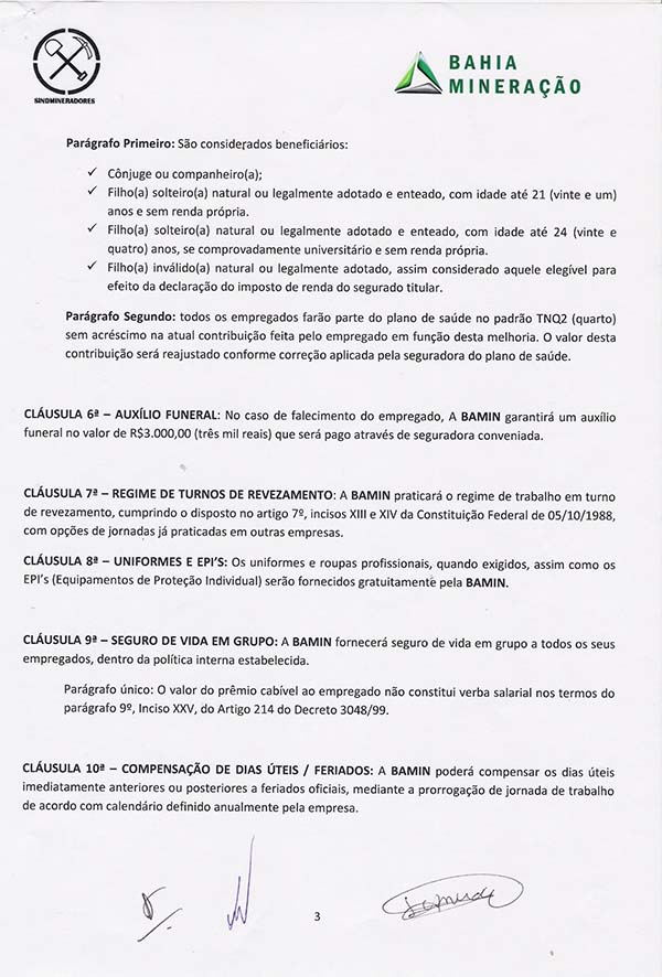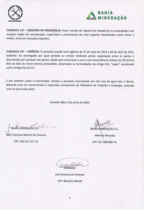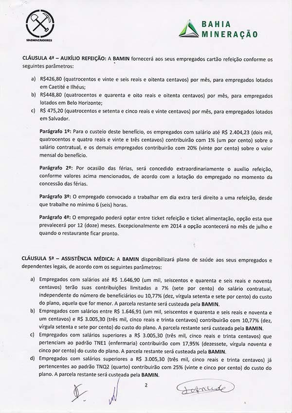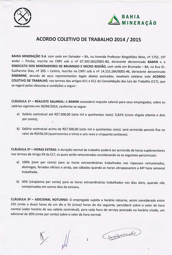 Acordo coletivo de trabalho 2014/2015 - Bahia Mineração S.A.