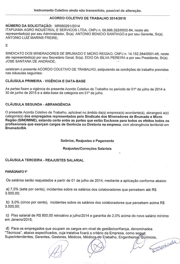 Acordo Coletivo de Trabalho - 2014/2015 - Itapuama Agro Industrial e Serviços LTDA