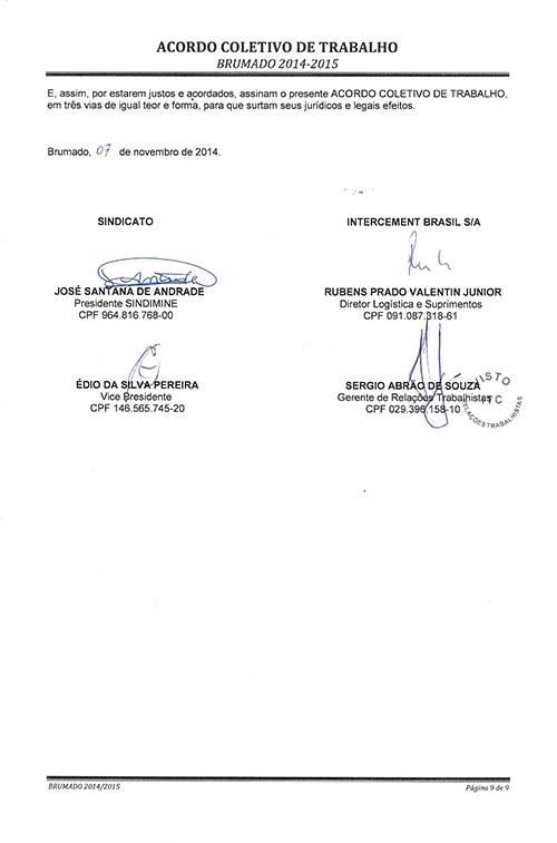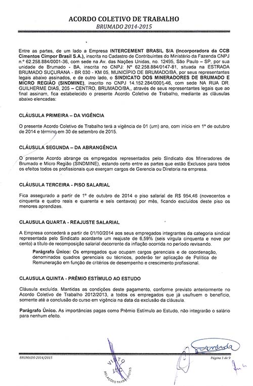 Acordo Coletivo de Trabalho 2014/2015 - Intercement Brasil S/A