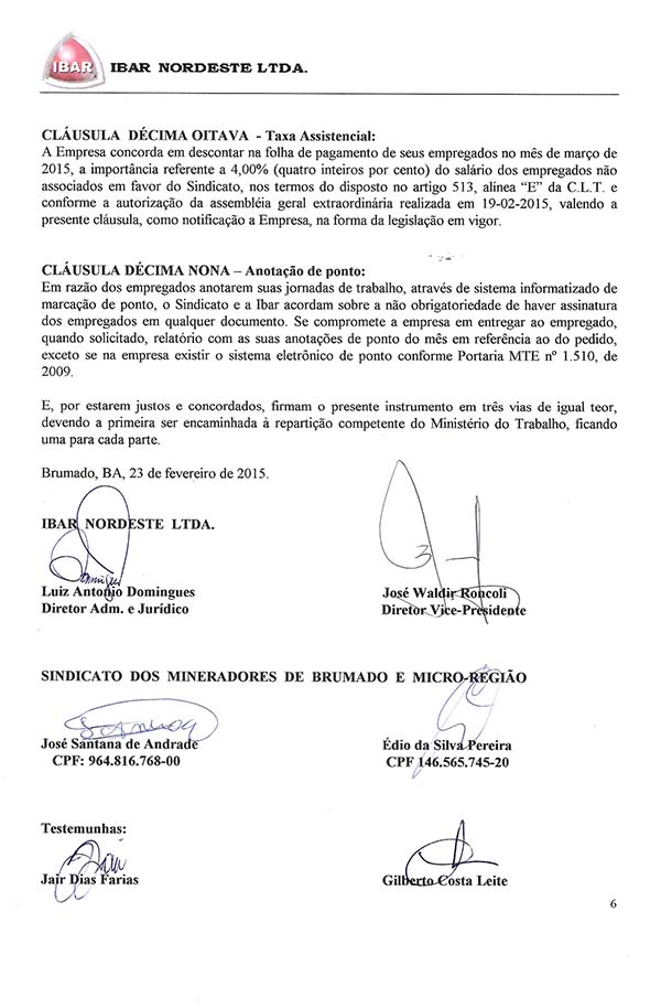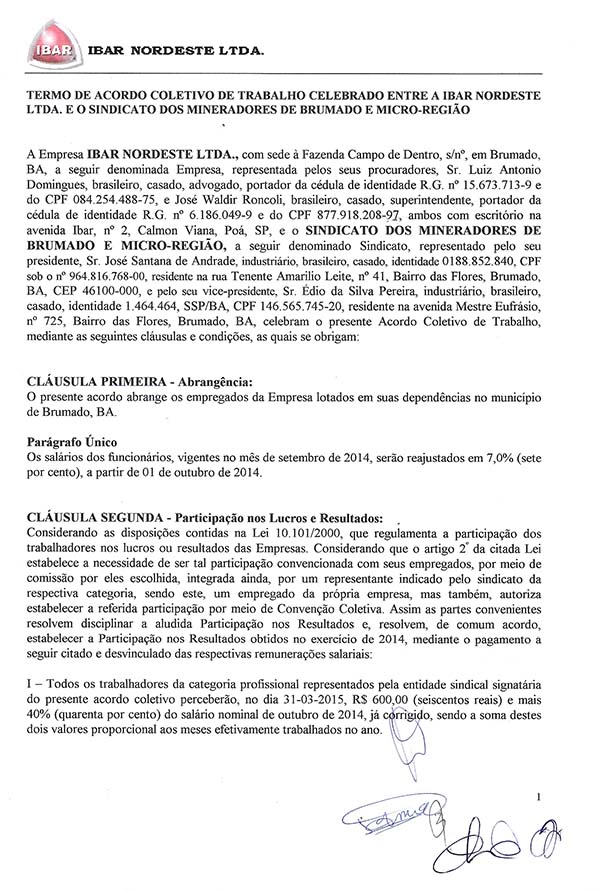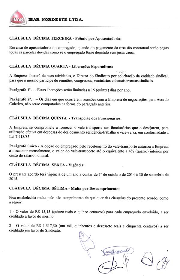 Acordo Coletivo de Trabalho - 2014/2015 - Ibar Nordeste LTDA