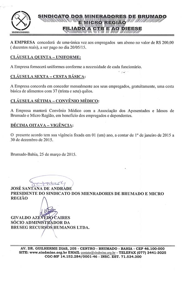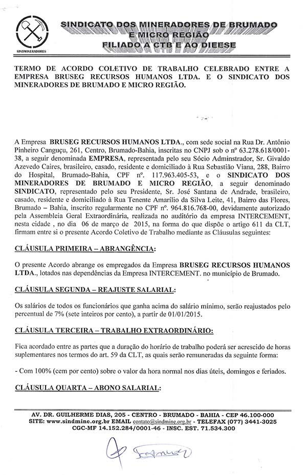 Acordo Coletivo de Trabalho 2015 - Bruseg Recursos Humanos LTDA