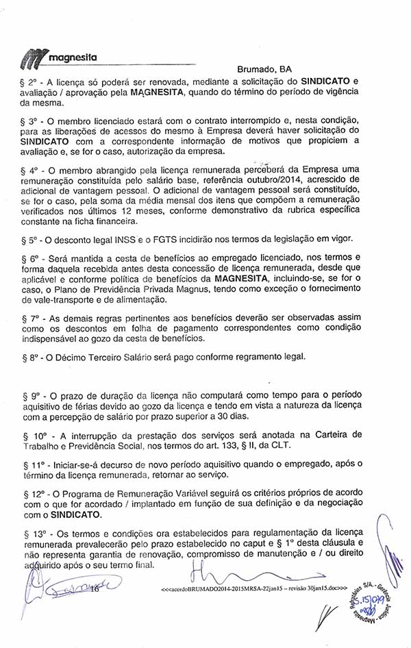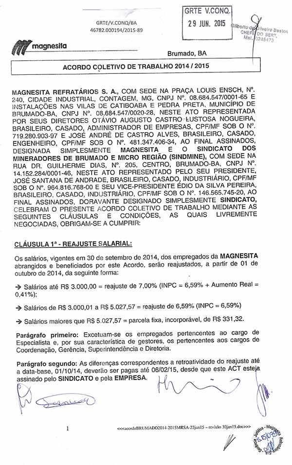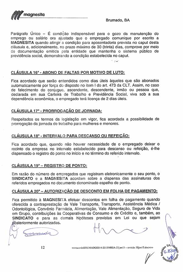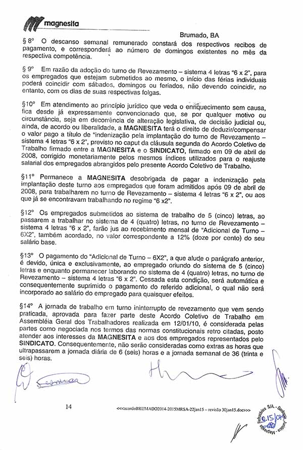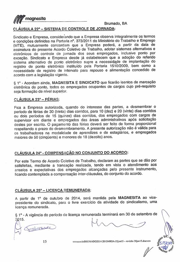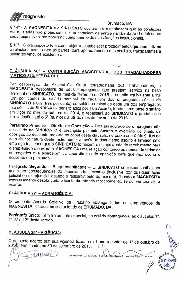 Acordo Coletivo de Trabalho - 2014/2015 - Magnesita Refratários S. A.