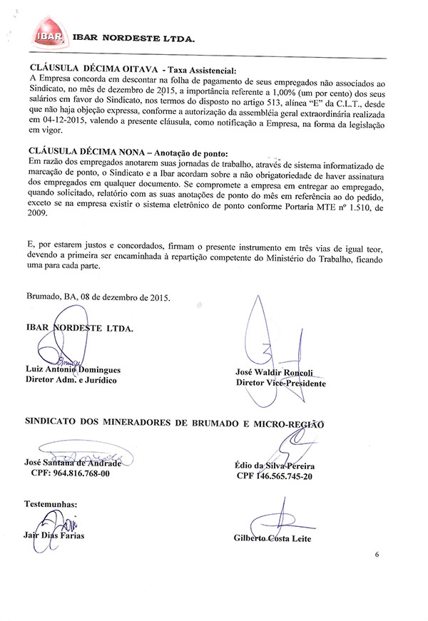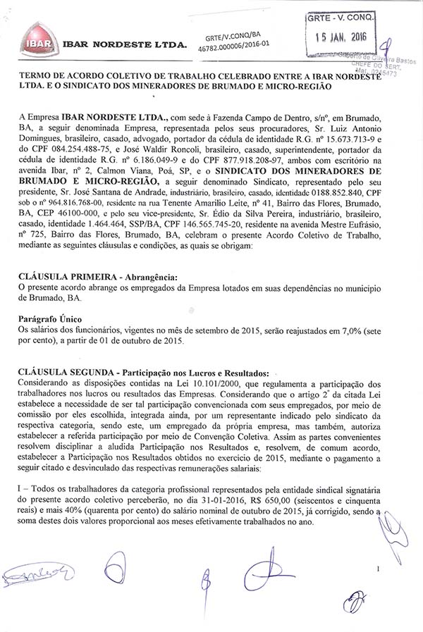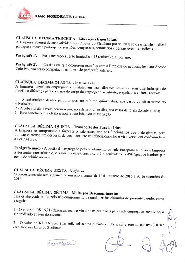 Acordo Coletivo de Trabalho - 2015/2016 - Ibar Nordeste LTDA