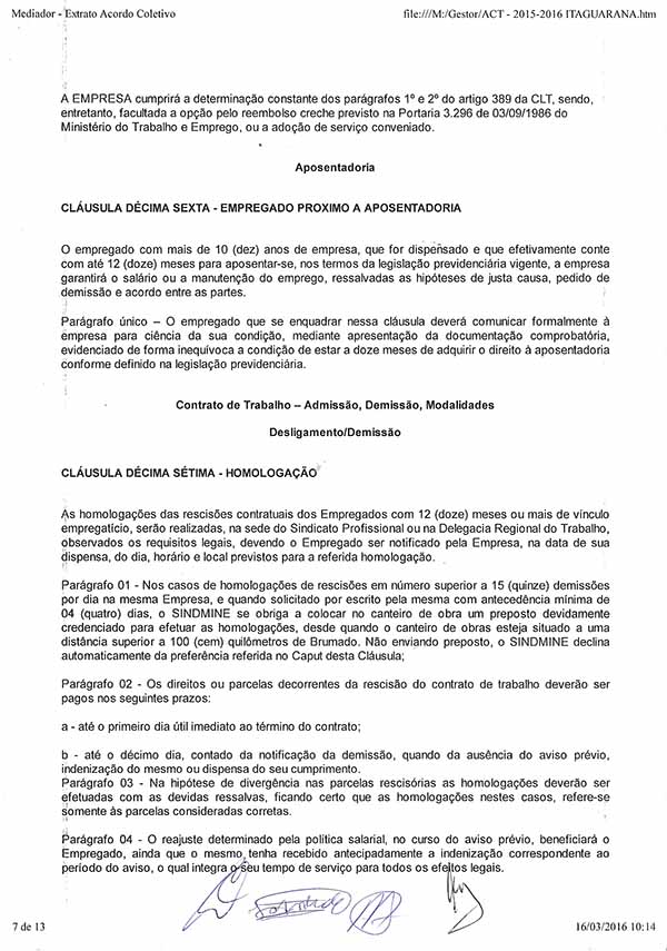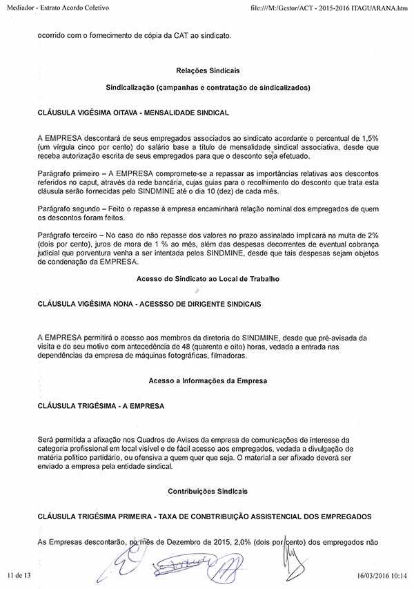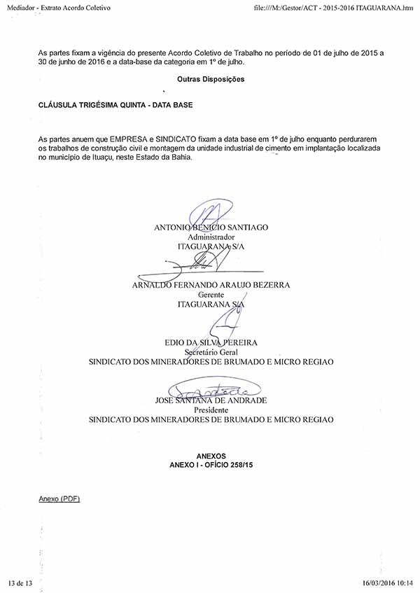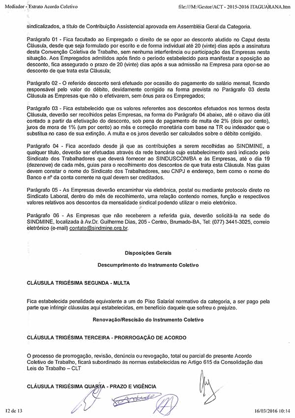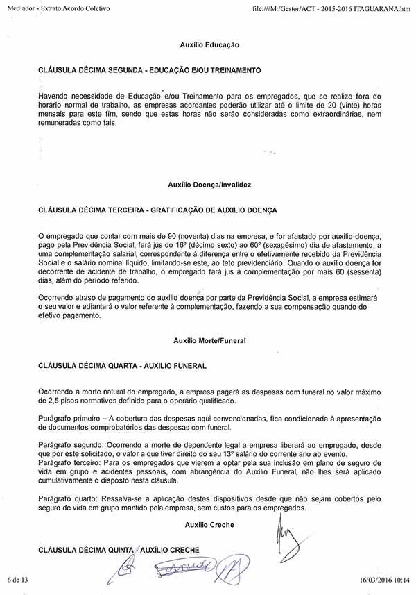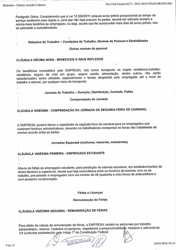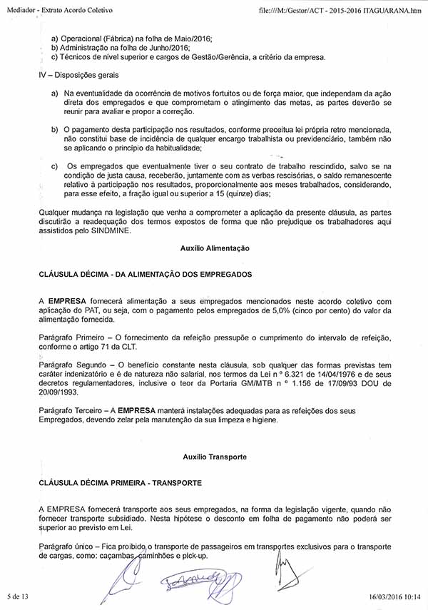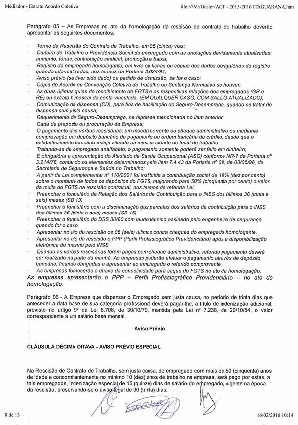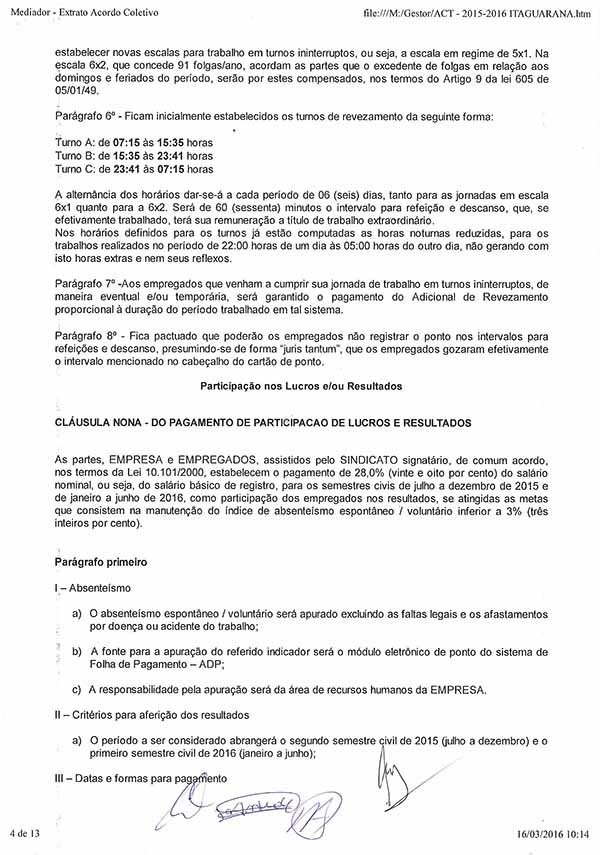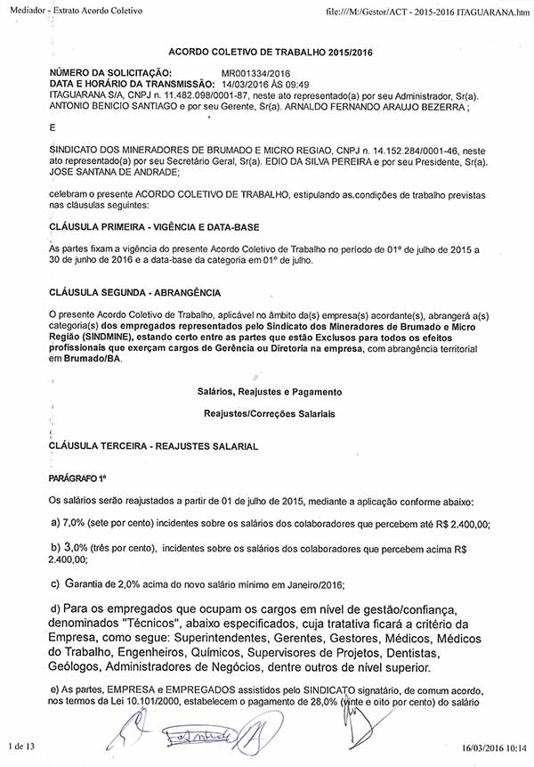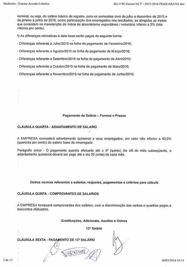 Acordo Coletivo de Trabalho - 2015/2016 - ITAGUARANA S/A