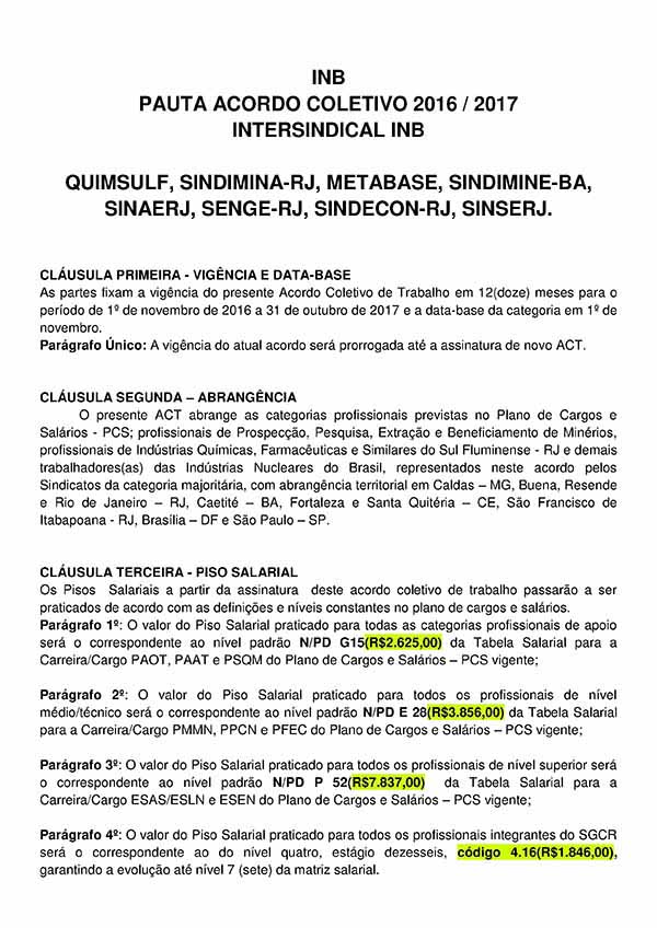 Pauta Acordo Coletivo de Trabalho - 2016/2017 - INB