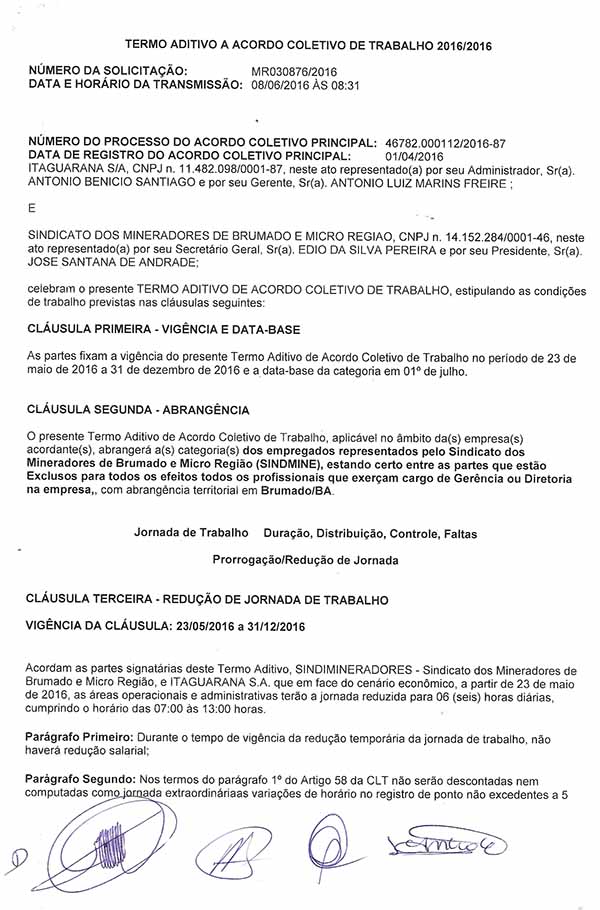 Termo Aditivo a Acordo Coletivo de Trabalho - 2016/2016 - Itaguarana S/A