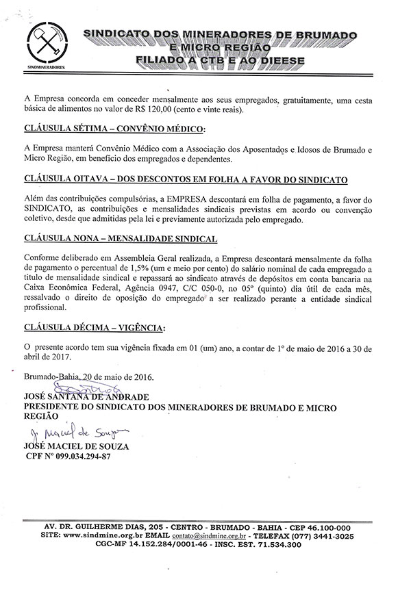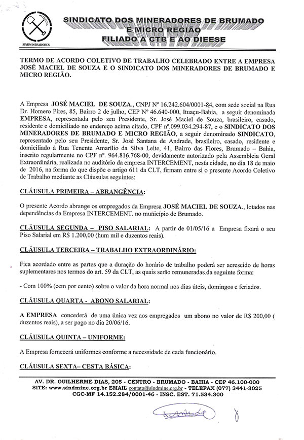 Acordo Coletivo de Trabalho - 2016/2017 - JOSÉ MACIEL DE SOUZA