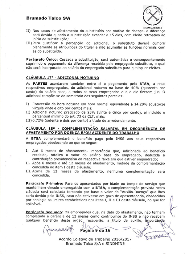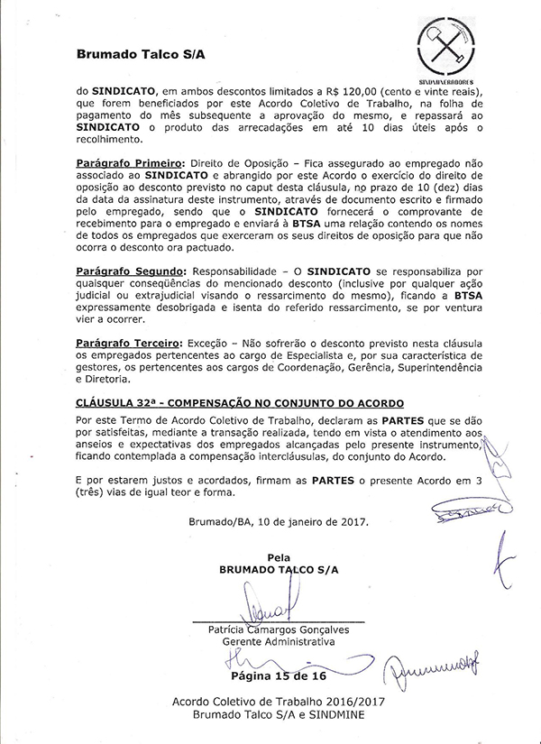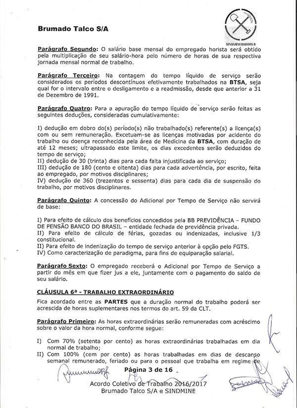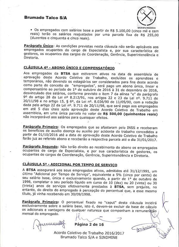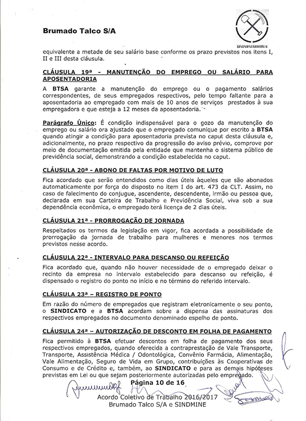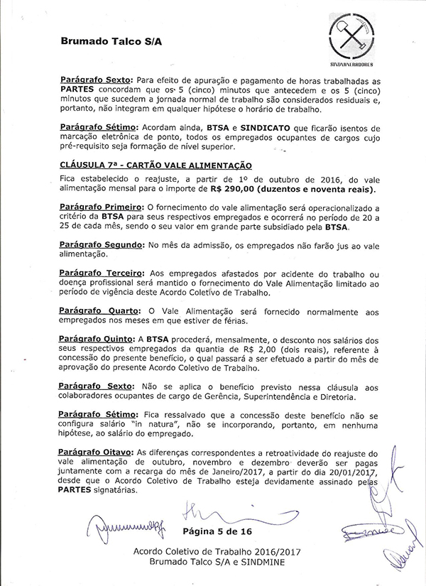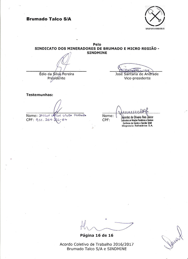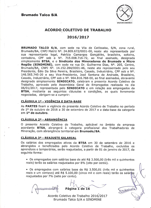 Acordo Coletivo de Trabalho - 2016/2017 - BRUMADO TALCO S/A