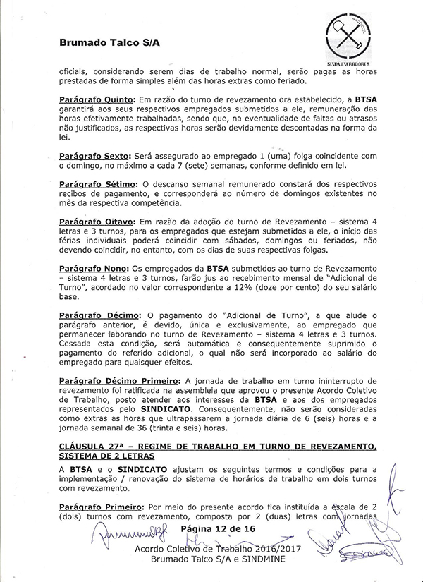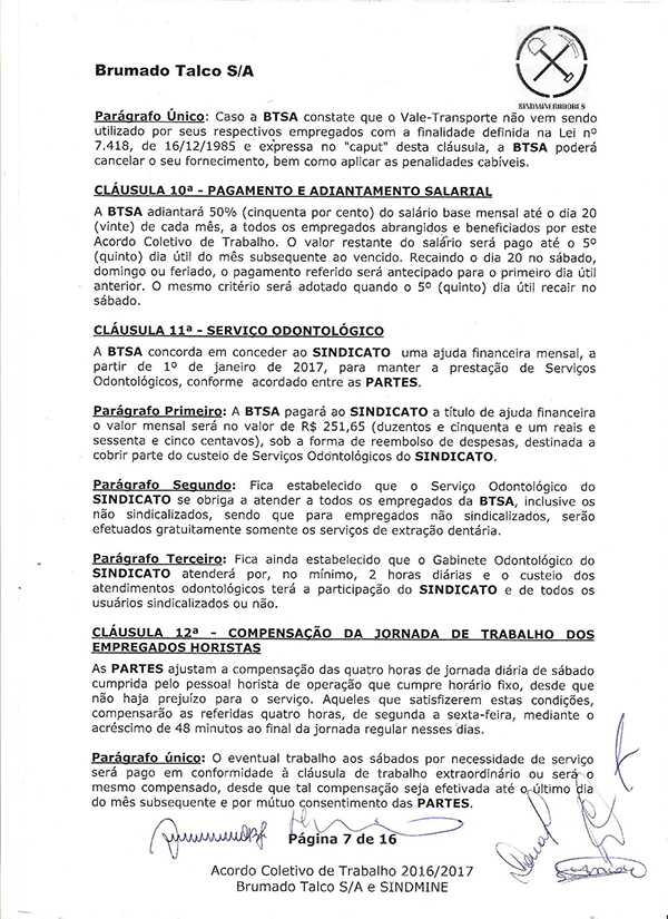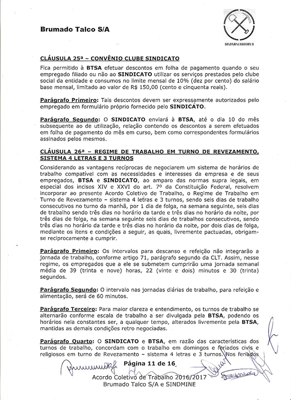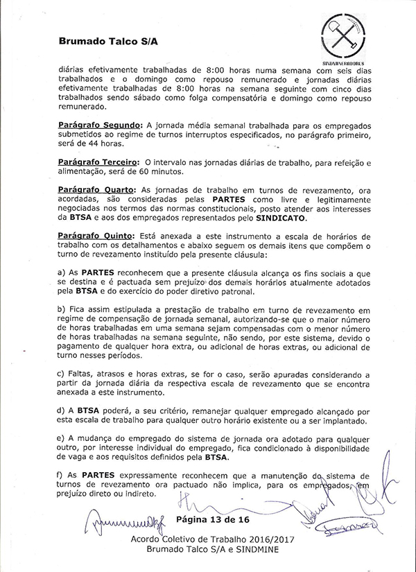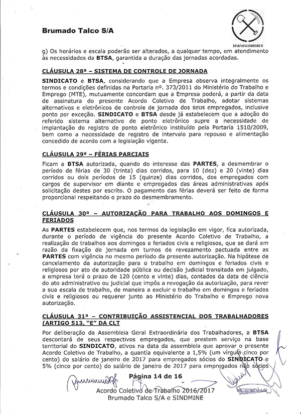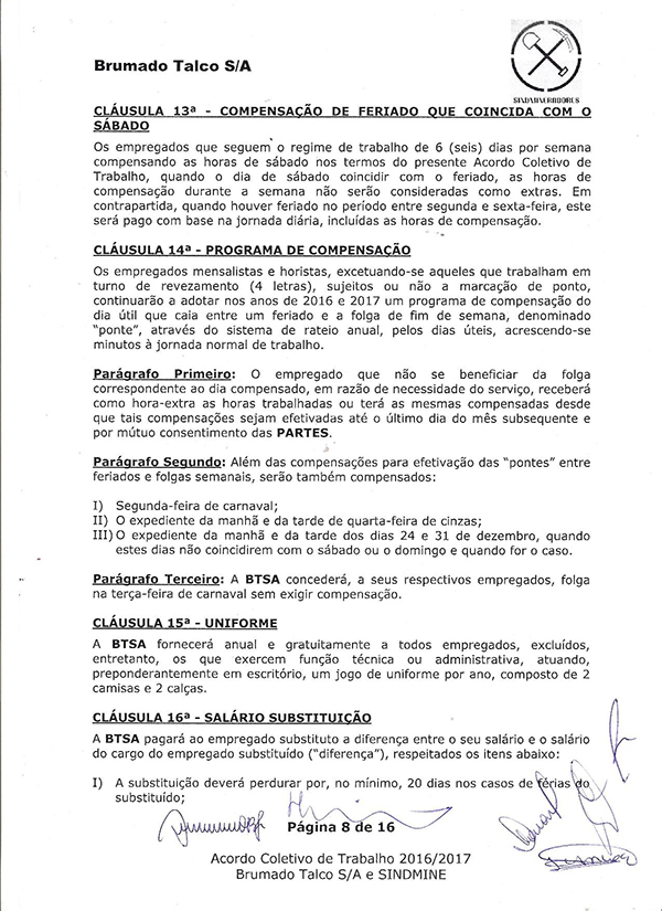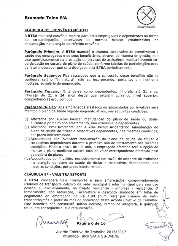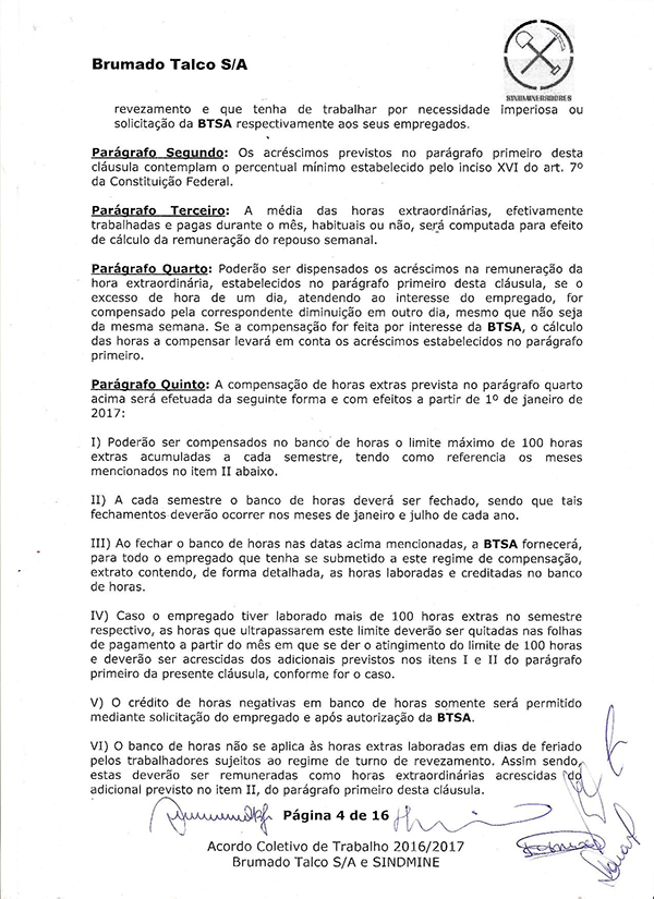 Acordo Coletivo de Trabalho - 2016/2017 - BRUMADO TALCO S/A