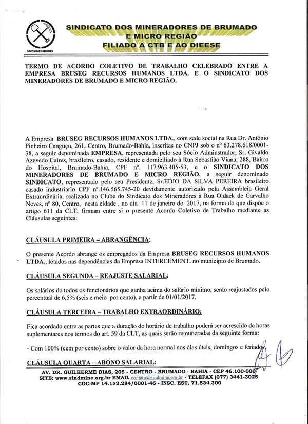 Acordo Coletivo de Trabalho 2016/2017 - Bruseg Recursos Humanos LTDA
