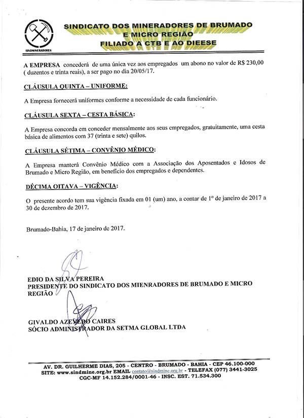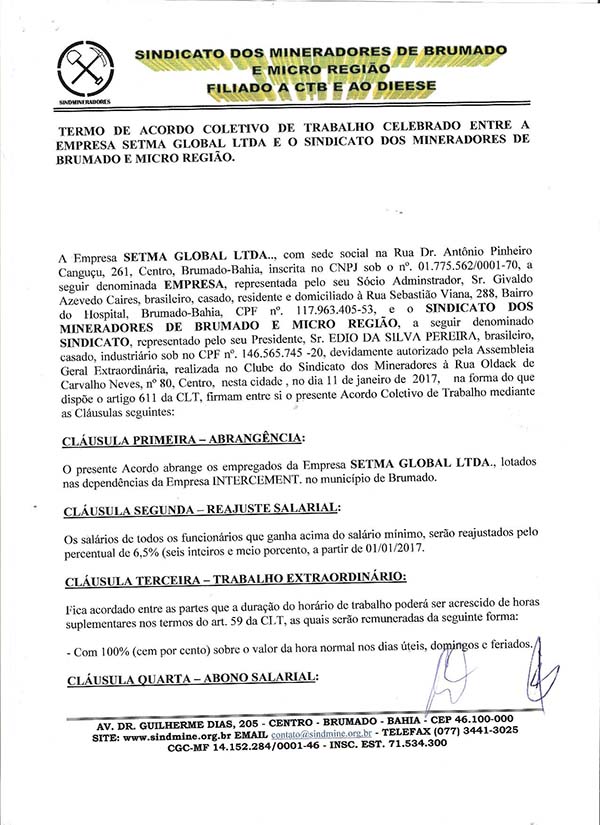 Acordo Coletivo de Trabalho 2016/2017 - Setma Global LTDA