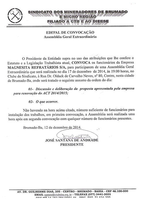 Edital de Convocação - Assembléia Geral Extraordinária - Magnesita Refratários S/A